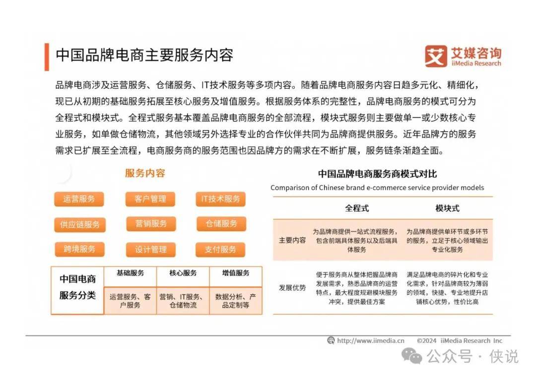 今天,我们聚焦于中国品牌电商服务商的发展现状与未来趋势,一探究竟。太侠今天分享的是《2024年中国品牌电商服务商行业研究报告》,来源:艾媒咨询。