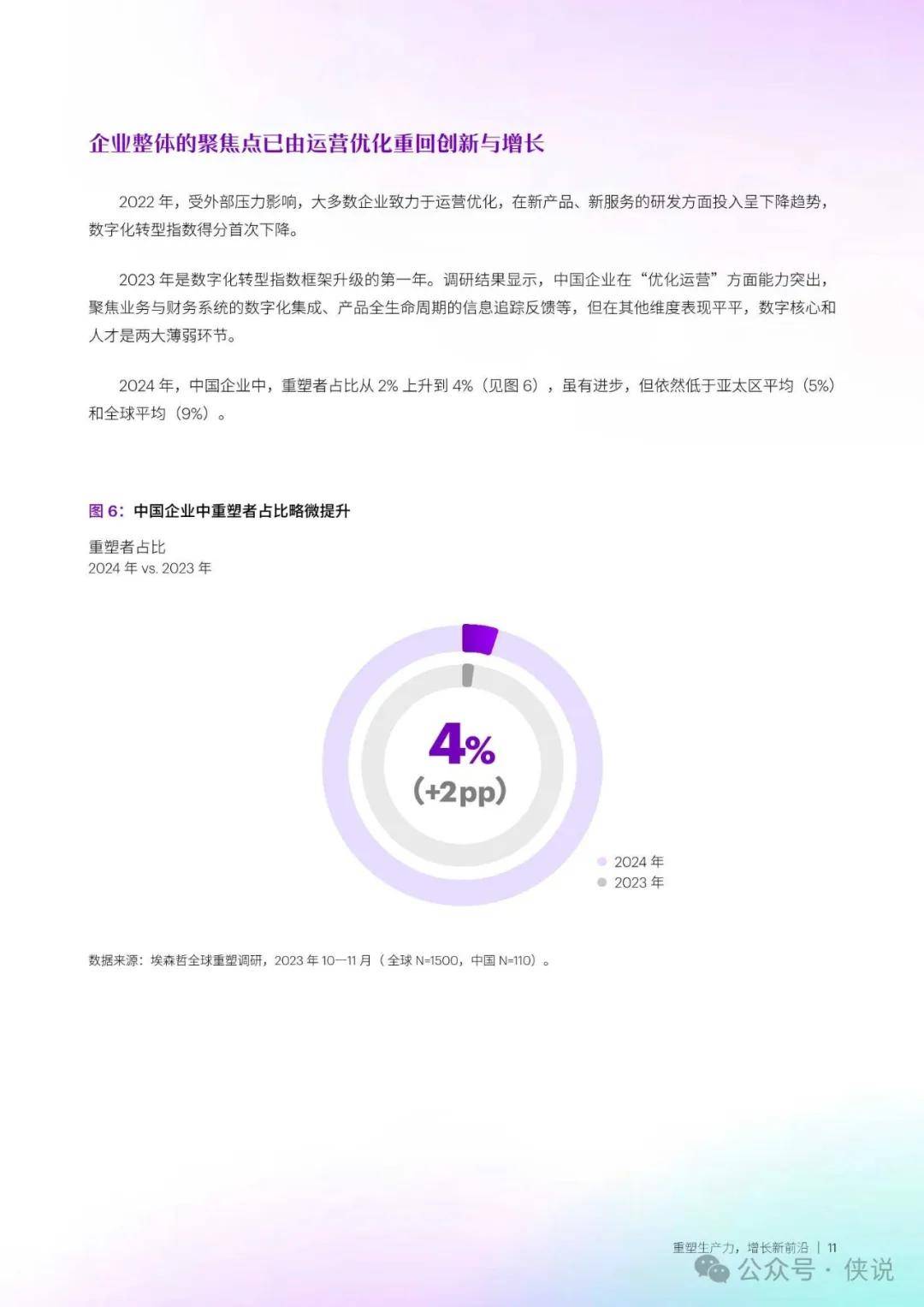 埃森哲的深度研究,为我们揭开了数字化转型指数的神秘面纱,指引企业迈向高质量发展的新前沿。太侠今天分享的是《2024中国企业数字化转型指数》,来源:埃森哲。