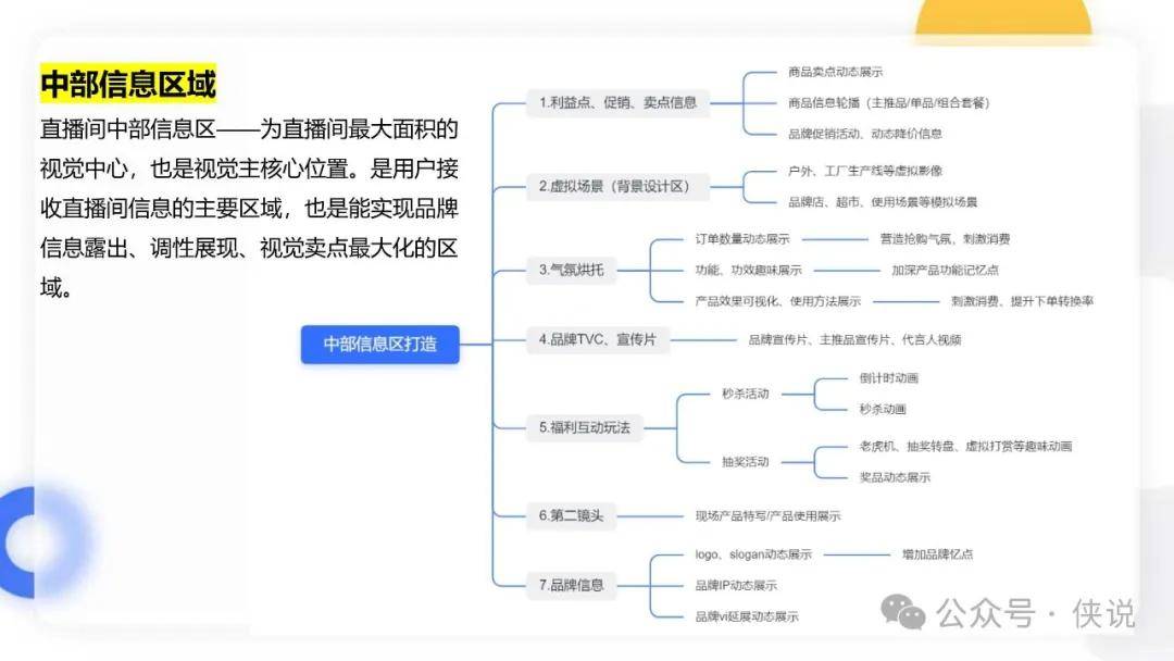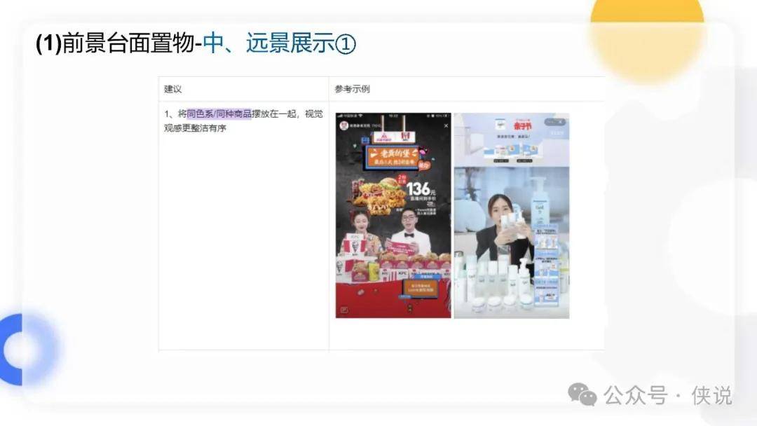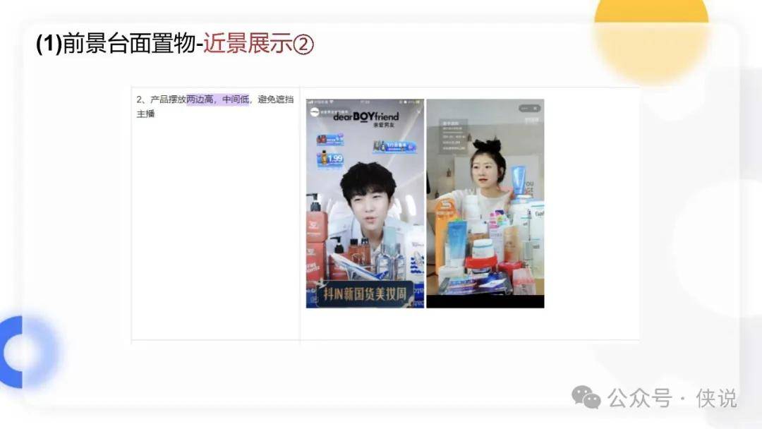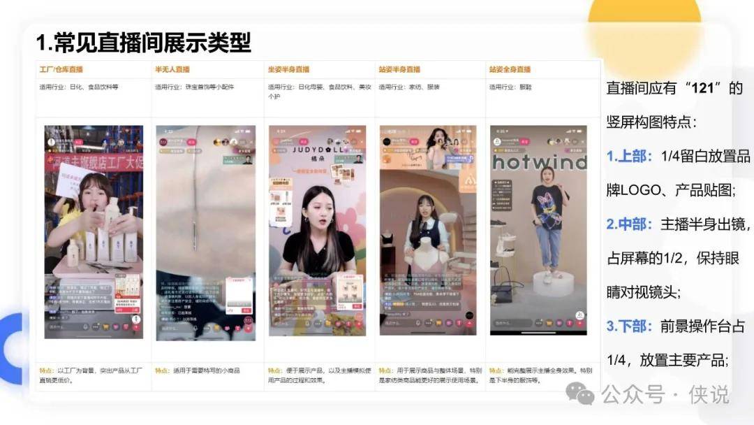 我们要理解直播间的基本构图原则。"121"的竖屏构图特点是直播间设计的基础。这一构图法意味着屏幕被分为三个部分:上部、中部和下部。上部占据屏幕的1/4,通常用于放置品牌标识如LOGO或产品贴图,以增强品牌识别度。中部是主播的主展示区,主播的半身出镜,占屏幕的1/2,主播应保持与镜头的直接眼神交流,使观众感到互动和亲近。下部1/4的空间作为前景操作台,用于展示主要产品,使观众能清晰地看到产品细节。