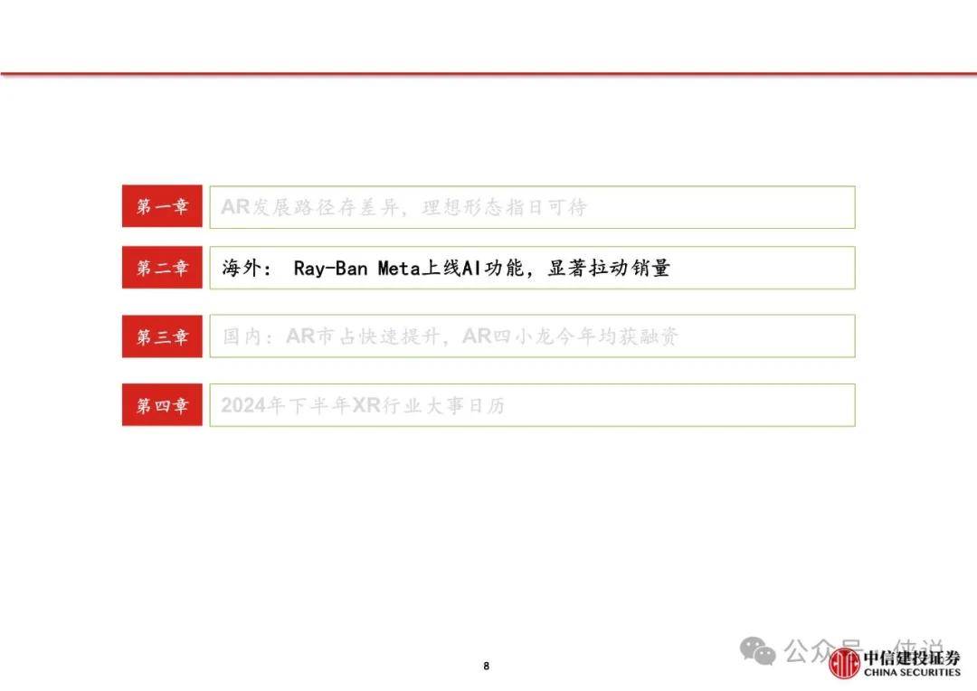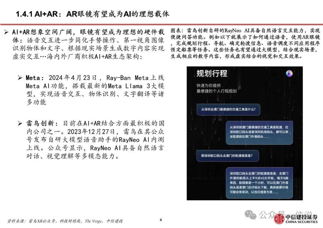 在这份由中信建投证券股份有限公司发布的报告中,我们得以一窥AR眼镜行业的未来趋势。报告指出,AI与AR技术的结合为智能眼镜带来了前所未有的想象空间,它们有望成为理想的硬件载体,推动内容和应用的快速发展。