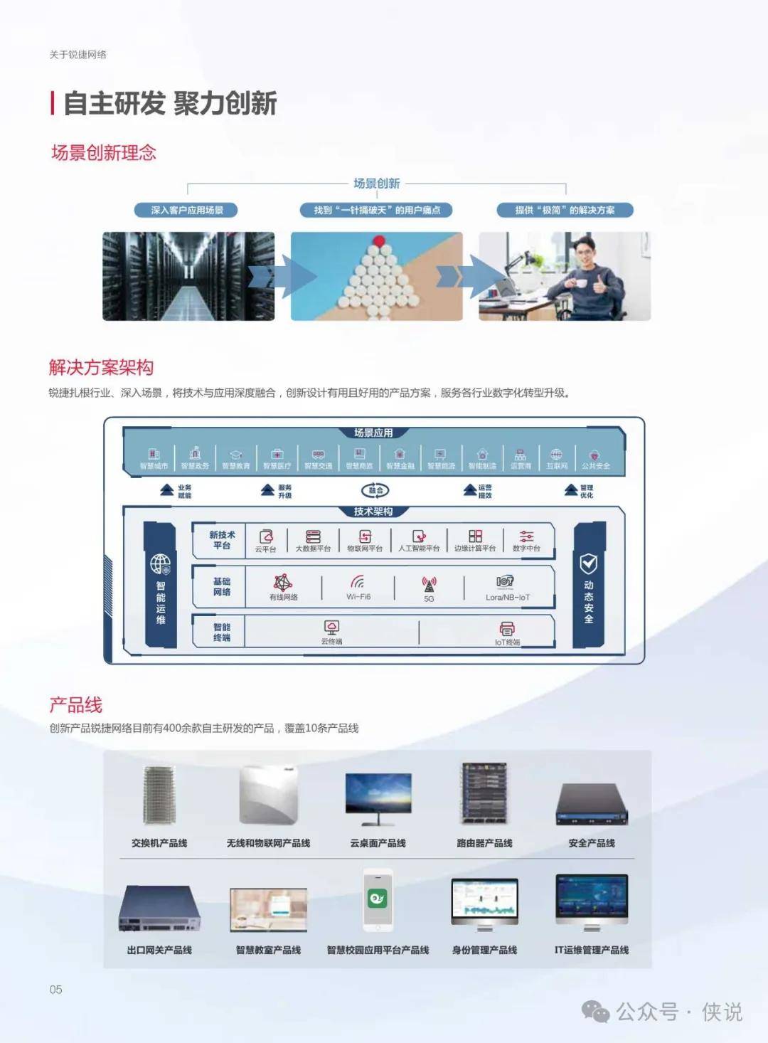 同时,报告还展示了锐捷网络在多个领域的成功案例,证明了其解决方案的实际效果和商业价值。