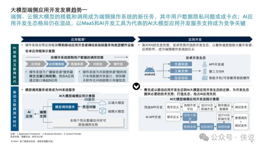 从操作系统层面的隐私问题,到MaaS(Model as a Service)和AI开发工具带来的商业模式创新,再到应用分发和应用调度的竞争,报告全面覆盖了AI时代下的各个关键领域。
