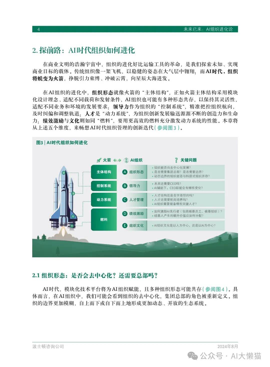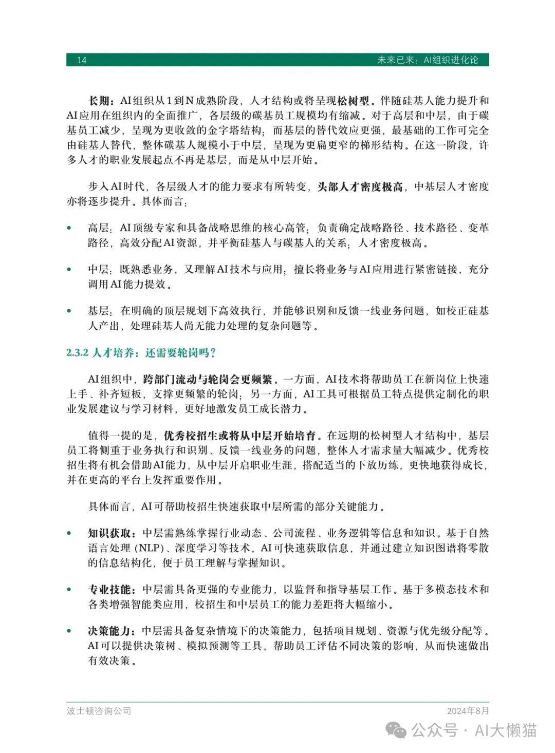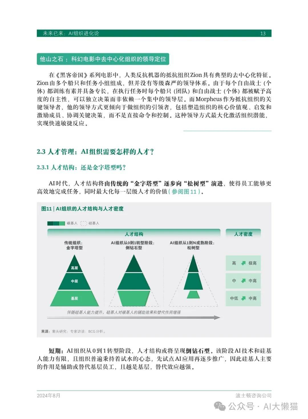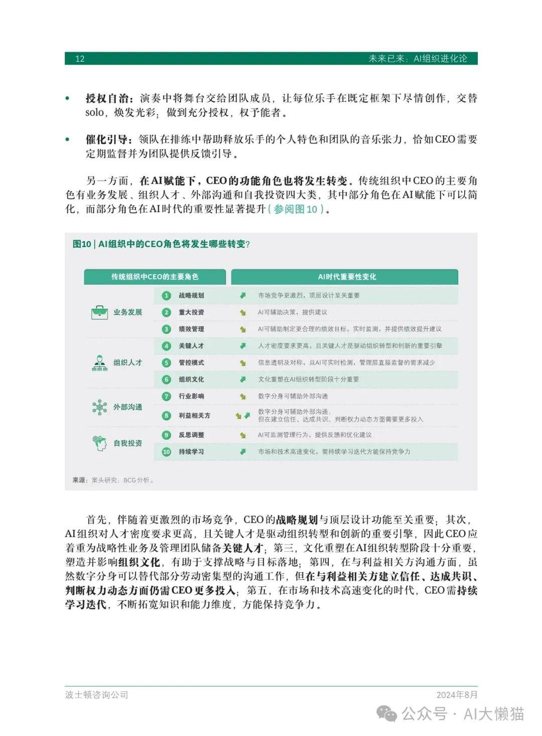 《未来已来:AI组织进化论》是由波士顿咨询公司(BCG)在2024年8月发布的一份深入探讨人工智能(AI)如何推动组织变革的报告。