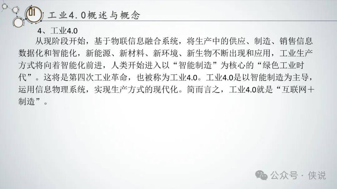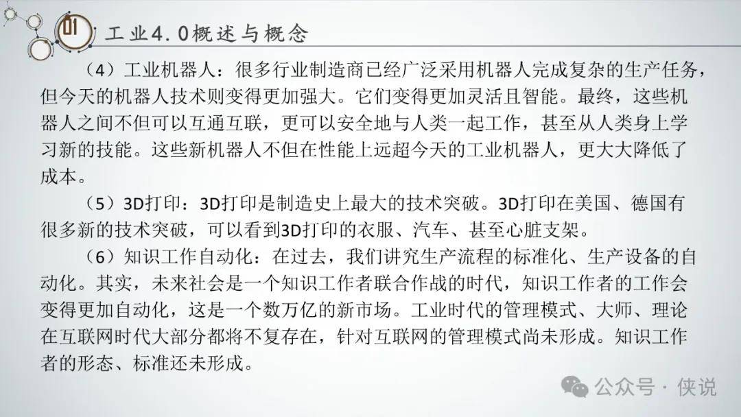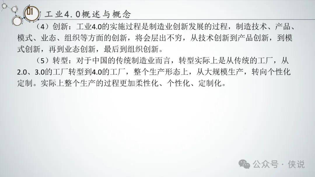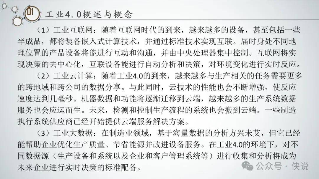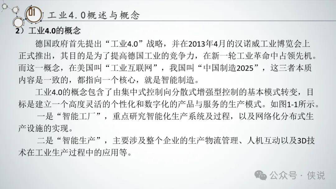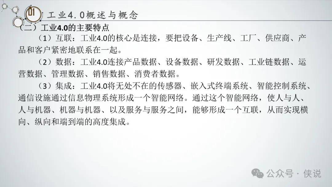 这一概念起源于德国,旨在提升工业竞争力,与美国的“工业互联网”和中国的“中国制造2025”相呼应。工业4.0的特点包括互联、数据、集成、创新和转型,强调个性化和数字化生产。