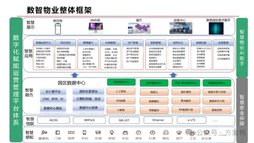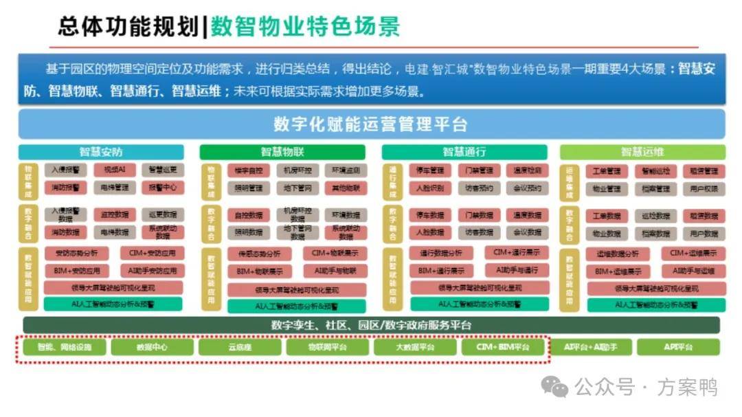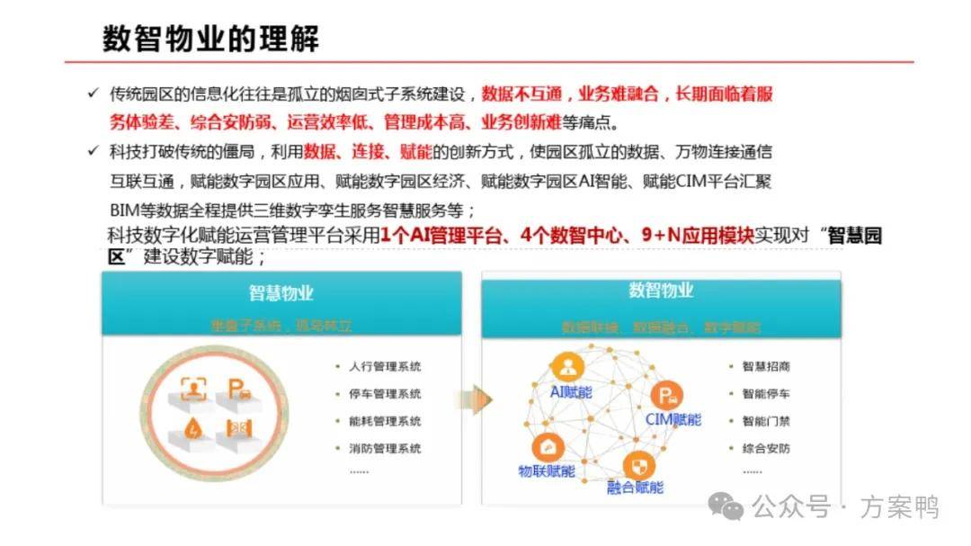 同时,报告提出了构建数智物业平台,以及通过CIM+BIM技术实现园区的数字化管理。