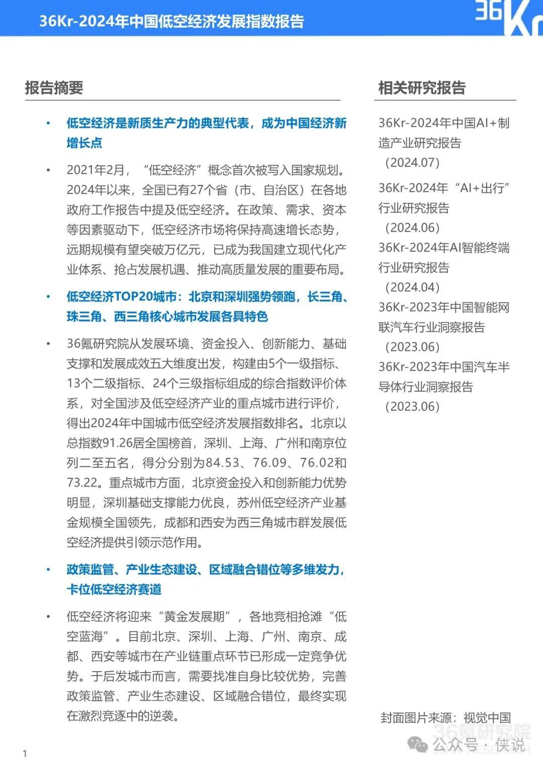 《2024年中国低空经济发展指数报告》,来源:36氪研究院。