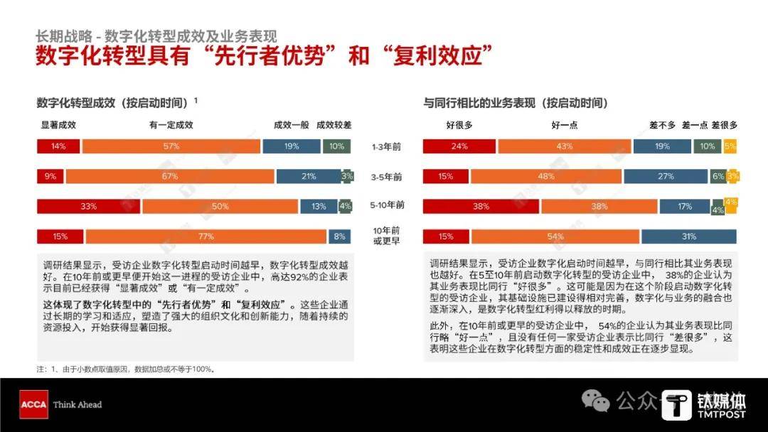 调研还发现,转型的成效与启动时间、经营情况正相关,早期转型的企业在业务表现上更优。