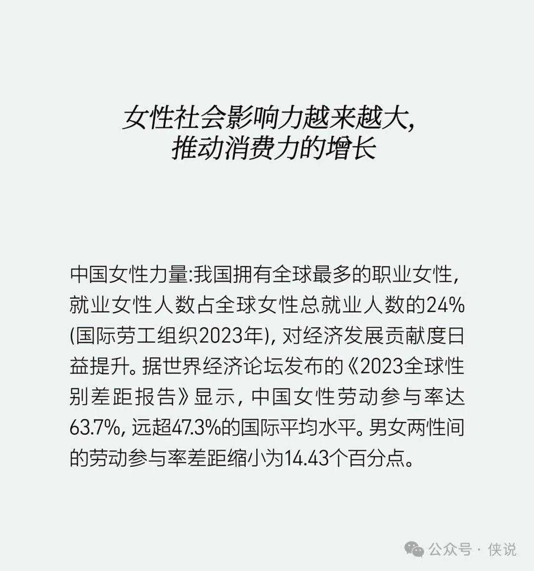 。女性消费力的增长不仅推动了传统市场的发展,也为新兴市场提供了巨大的增长空间。