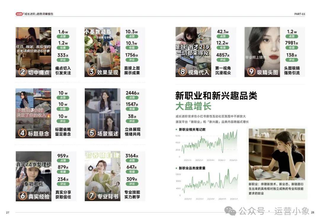 报告还探讨了新职业和新兴趣品类的增长,以及如何通过小红书平台进行有效的品牌营销。