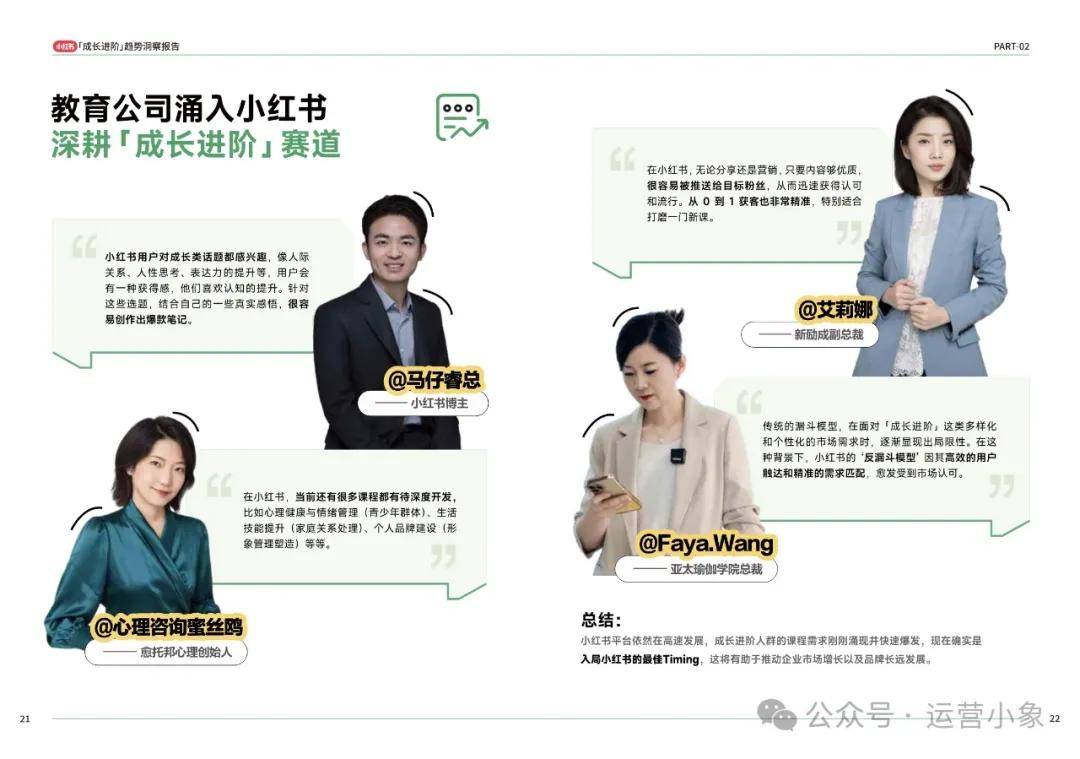 不同年龄段和背景的人群都在寻求成长进阶的机会,这推动了教育市场的蓬勃发展。小红书作为成长进阶人群的主要信息平台,其用户对成长类话题表现出浓厚的兴趣。