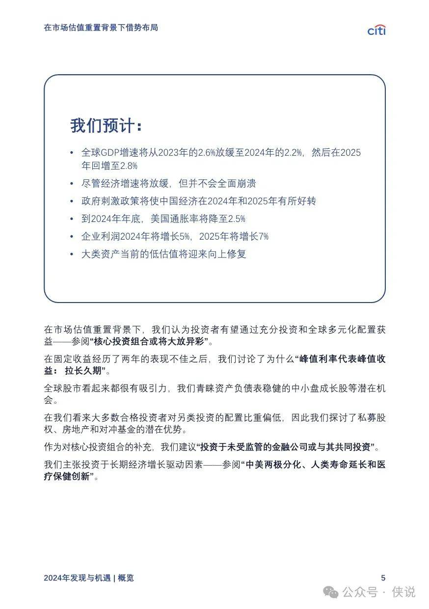 随着2024年的脚步越来越近,我们对未来的财富管理充满了期待和好奇。花旗集团的《2024年财富展望报告》为我们提供了深入的洞察和实用的策略,帮助我们在不确定的经济环境中寻找稳定的增长点。