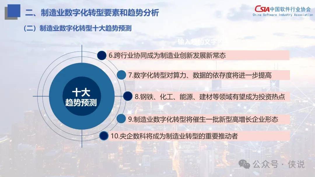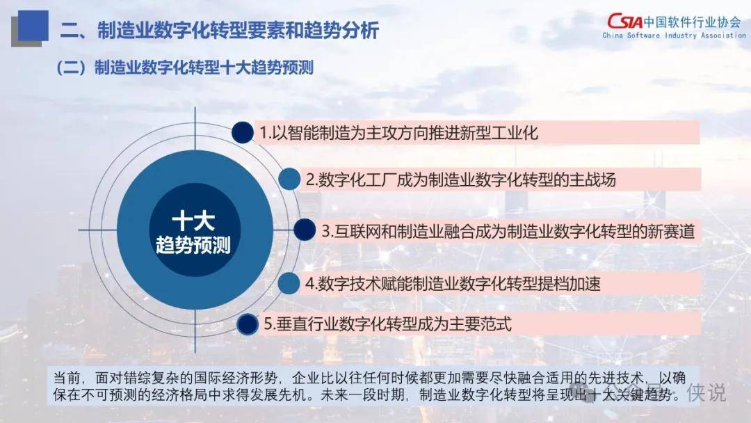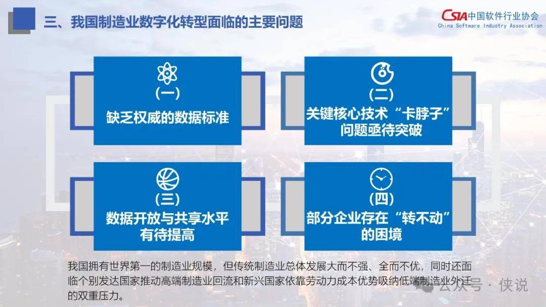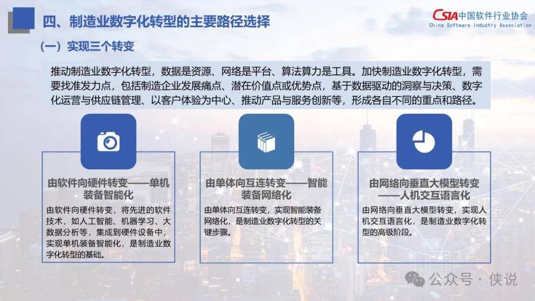 报告建议,积极推进以龙头企业数字化转型落地带动上下游企业转型的牵引工程;以垂直行业数字化转型整合和政策创新促进企业集群转型的开花工程;以算力、数据、元器件创新为依托,促进第三方创新创业的竹笋工程;以政策创新和资金支持为依托,打造一批独角兽企业的样板工程;以领军人才引进和重大试点示范项目为重要抓手的试点示范工程。