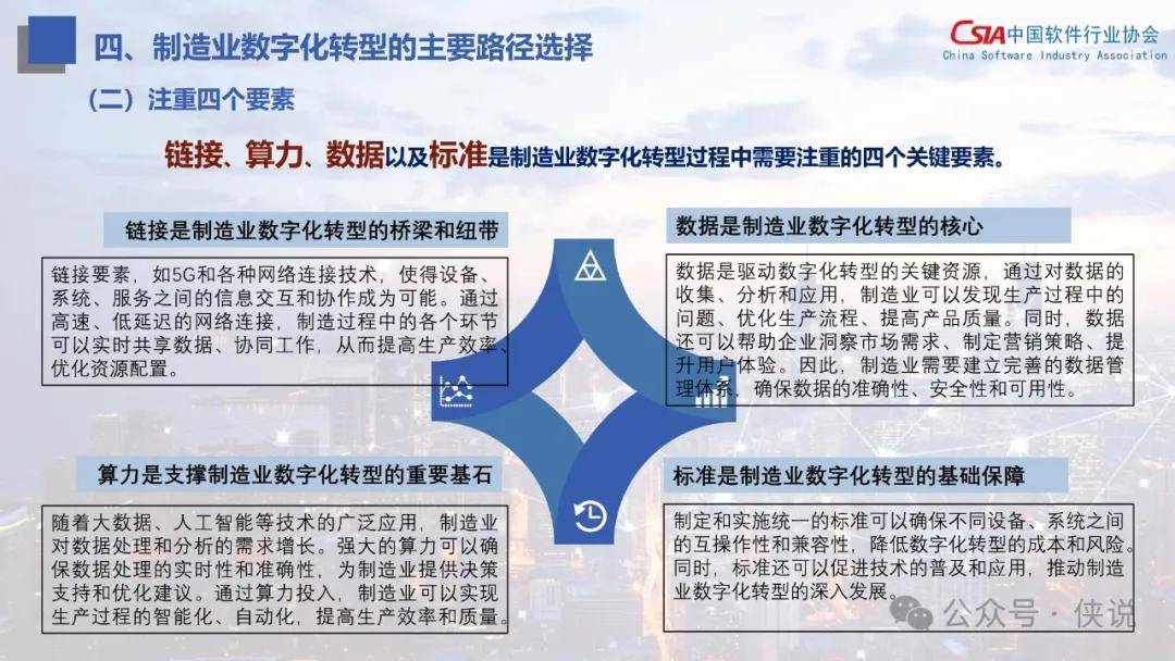 报告提出,制造业数字化转型是一项系统性工程,需要政府、企业和社会各方力量共同参与和努力。建议通过加强政策引导、加大基础设施建设投入、推动技术创新与研发、实施人才培养与引进计划、推动产业链协同转型、开展试点示范与经验推广、推动工业数据标准制定与开放共享应用以及加强国际合作与交流等措施,共同推动我国制造业数字化转型取得更大成效。