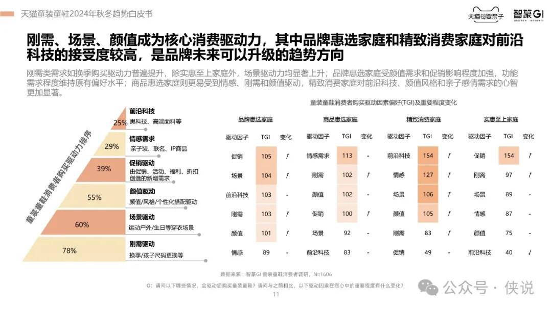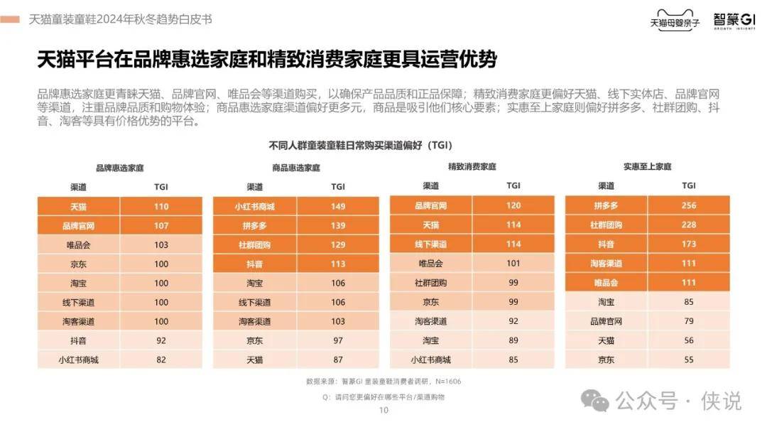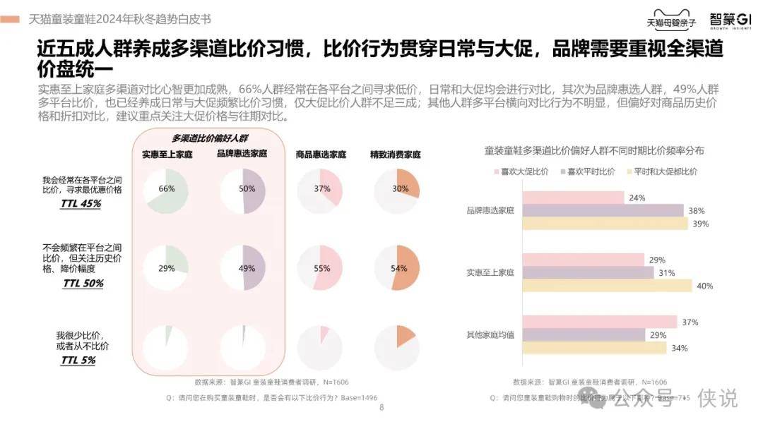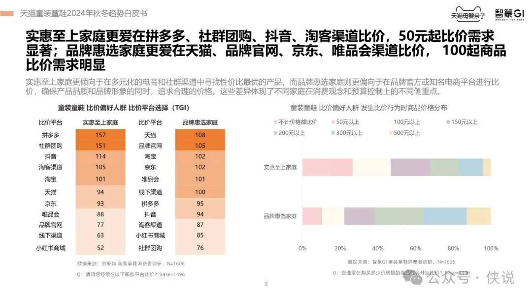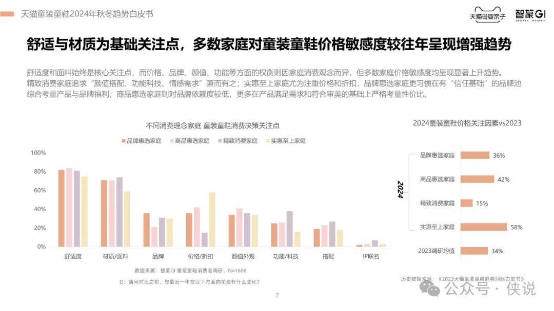 此外,报告还指出,舒适度和面料是消费者的核心关注点,而价格敏感度在不断上升。不同家庭对童装童鞋的消费决策关注点存在差异,但多渠道比价已成为普遍行为。