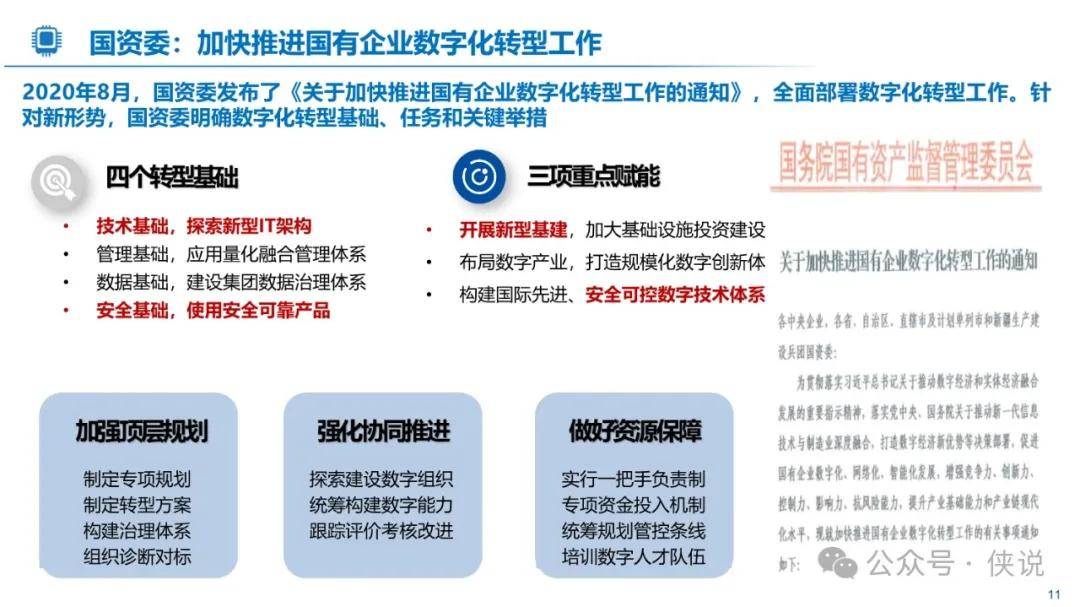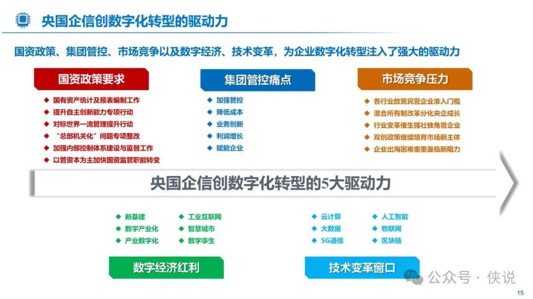 通过重构IT基础设施、基础软件、信息安全等,央国企旨在构建自主可控的技术体系,确保国家网络安全。数字化转型方面,报告提出了物联网、云计算、人工智能等技术的融合应用,以及数字化与信息化的区别和联系。