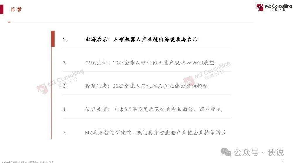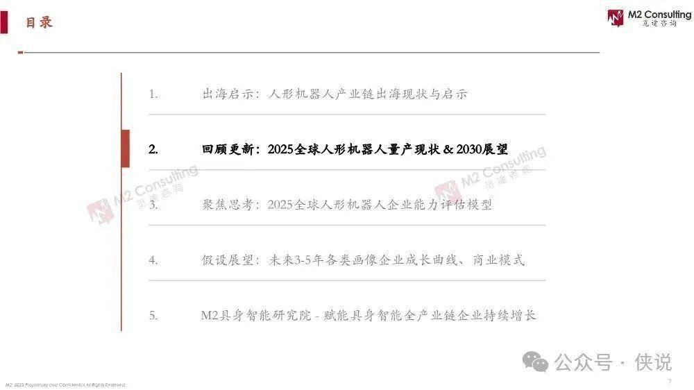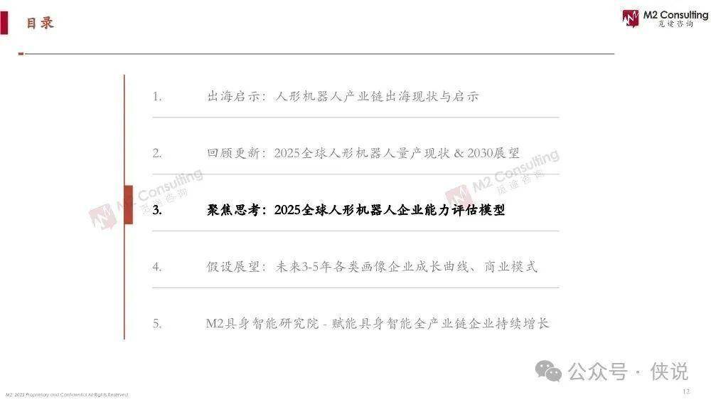 《2025全球人形机器人企业能力画像(整机能力评估模型2.0)》由M2觅途咨询出品,聚焦人形机器人产业链出海、量产进度、企业能力评估及未来展望。