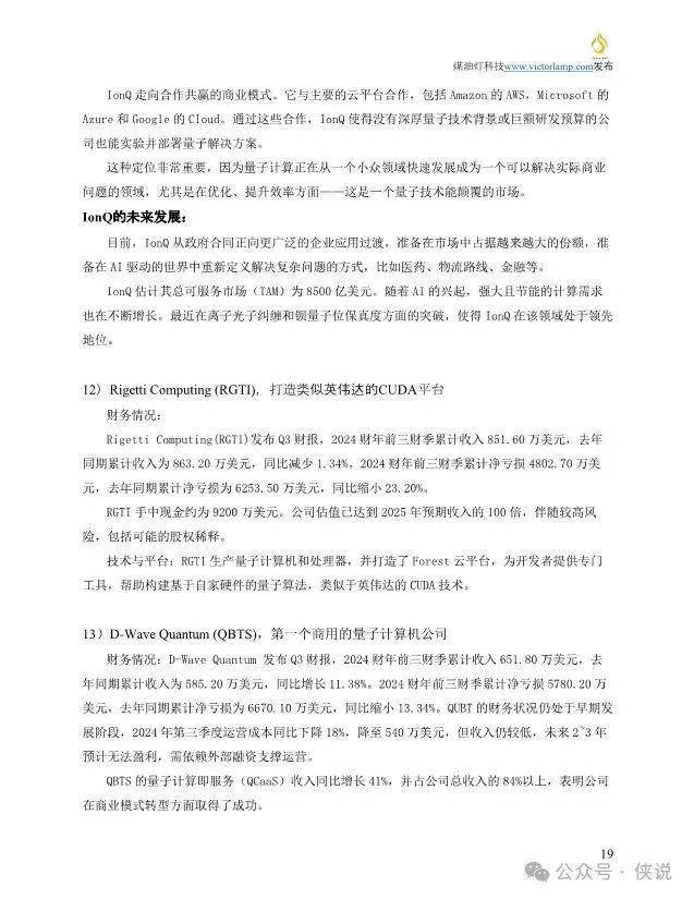 企业进展:IBM按计划推进,2025年要交付量子超算商用产品;IonQ市值最高(约65亿美元),和阿斯利康合作做药物研发;Rigetti在打造类似英伟达CUDA的量子平台。