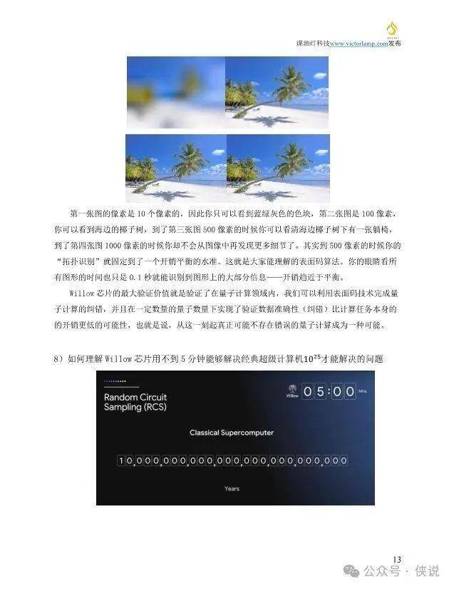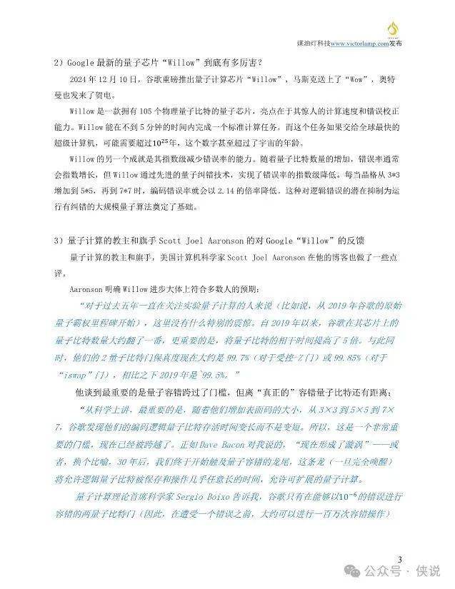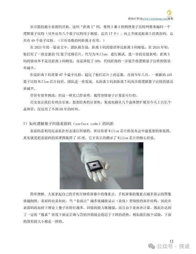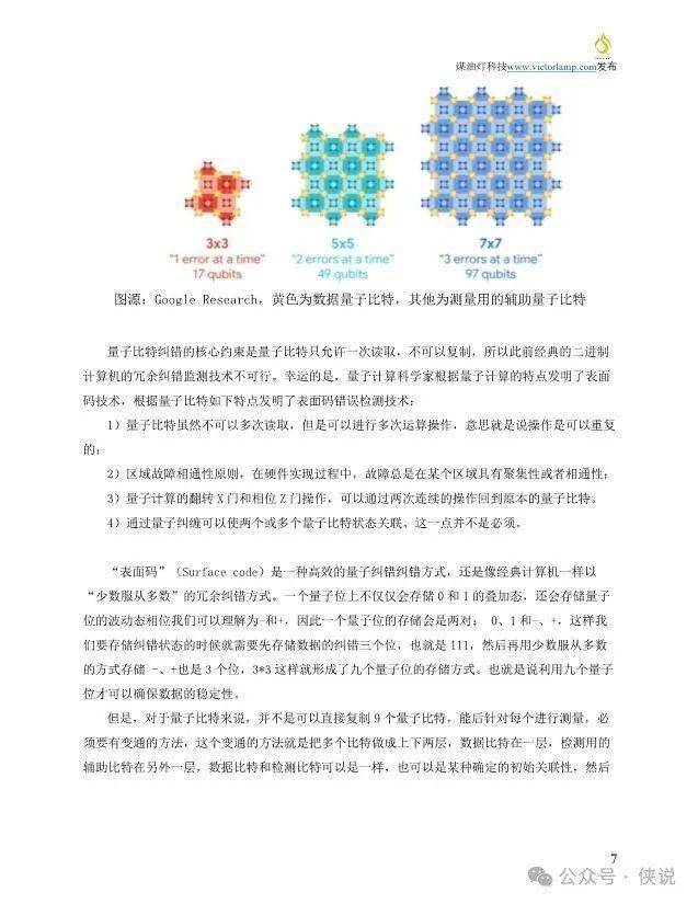 谷歌Willow芯片亮点:105个物理量子比特,5分钟能完成超算需10²⁵年的任务,还能指数级降低错误率(晶格从3×3到7×7,错误率以2.14倍降低)。