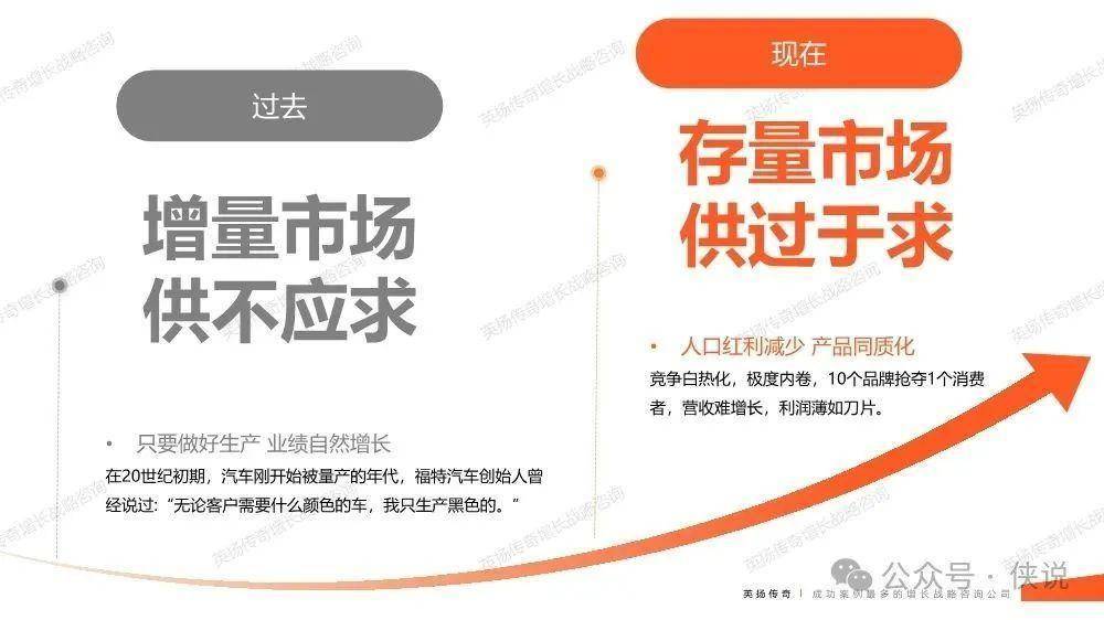 过去,市场供不应求,企业只要做好生产就能增长(比如福特只产黑色汽车也能畅销);现在,人口红利减少、产品同质化严重,10个品牌抢1个消费者,营收和利润压力陡增。