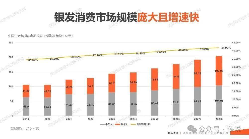市场规模大:银发消费持续扩容,2024年老年人消费额93.19亿元,占总消费比例超38%,且增速稳定。
