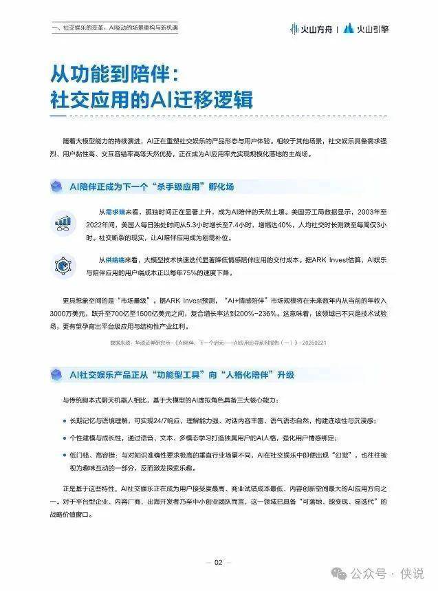 AI社交陪伴正从“工具”变成“情感连接者”,通过角色扮演、多模态互动等,给用户全新体验。这份方案提供了可落地、可扩展的流程,帮你快速做出有竞争力的产品。未来社交会是人、机共同参与的新模式,火山引擎能帮合作伙伴抓住这个机会。