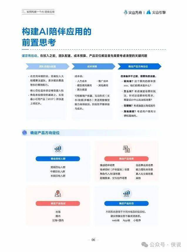 想做这类应用,得先想清楚团队、成本、产品定位(比如目标人群是年轻人还是泛娱乐用户,主打国内还是海外市场)。完整流程涵盖AI内容创作、角色图像设计、功能开发、模型效果评估、内容安全管控等。火山引擎的豆包大模型能提供多模态能力,支持文本、语音、图像生成,还能快速创建虚拟角色,有主动发消息、群聊、多风格回复、亲密度管理等玩法。