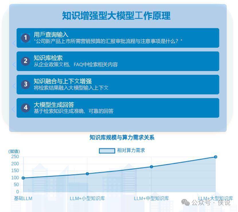 这种“大模型+知识库”的模式,会更费算力:比如企业部署一个带中型知识库的大模型,需要的算力是基础大模型的2-3倍。但好处也明显,比如你问“公司新产品营销预算怎么审批”,模型能直接翻内部文档,给出准确答案,不会再瞎编。