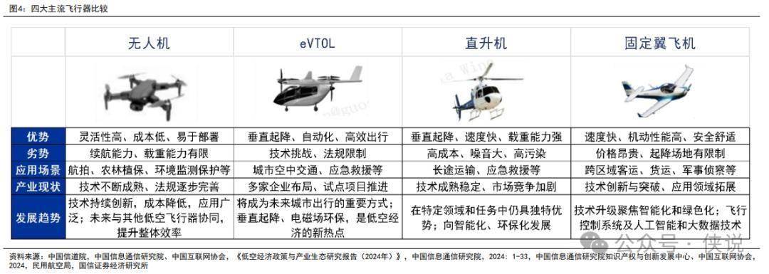 这里面最受关注的就是eVTOL,它跟直升机、无人机都不一样——不用跑道就能垂直起降,噪音比直升机小很多,还零排放,成本也低。