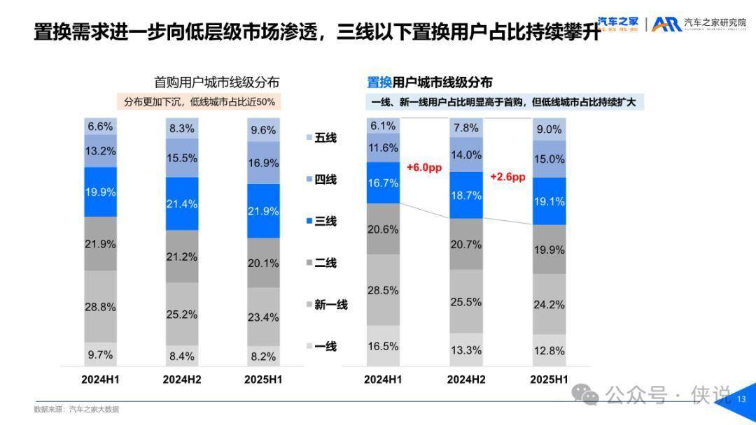 此外,置换需求向低层级市场渗透,三线以下城市用户占比持续攀升。
