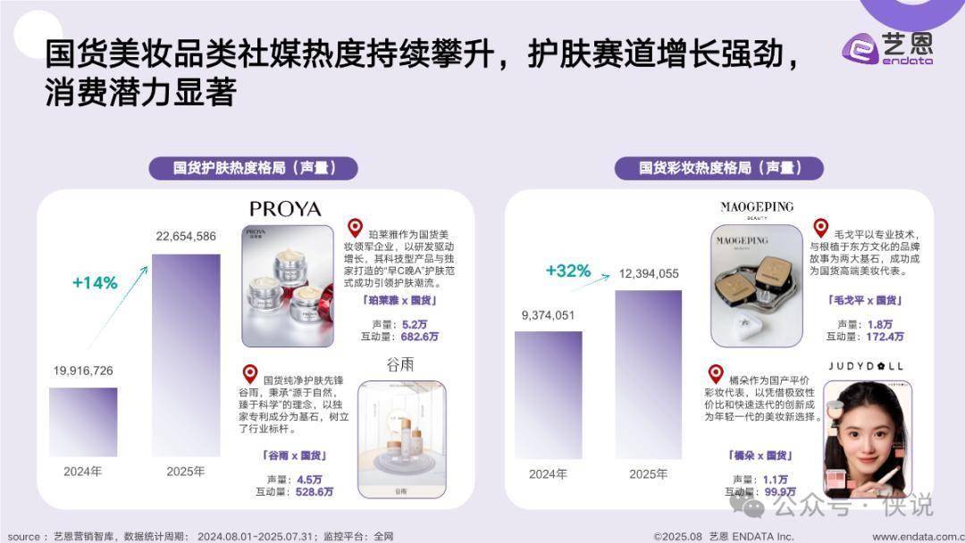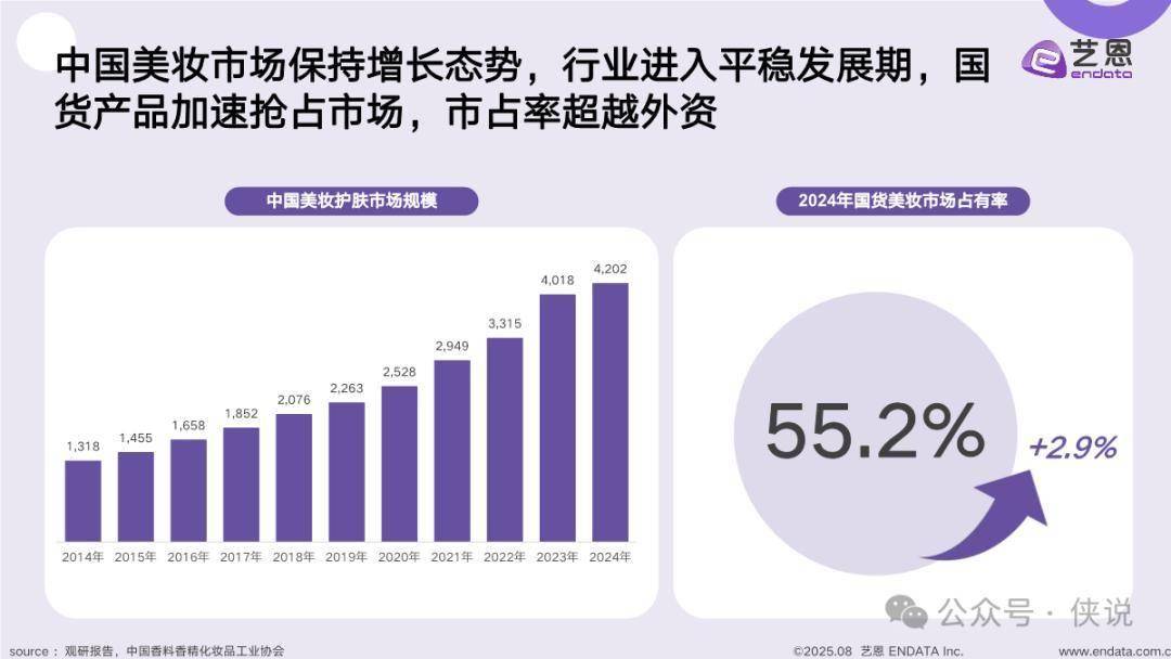 这份由艺恩出品的报告,从国货美妆整体市场、护肤市场、彩妆市场三大板块,拆解了2025年国货美妆的消费趋势。