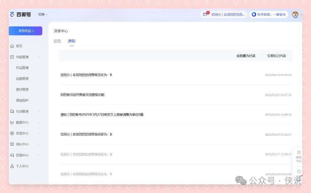 :平台的规则通知、作品违规提醒、流量受限警告总是不能及时收到