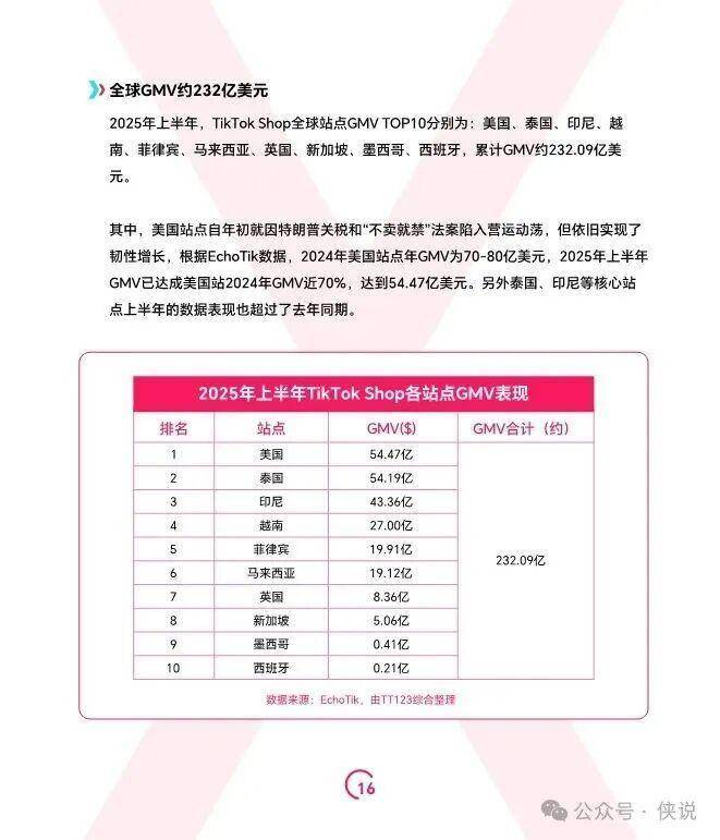 尽管面临特朗普超高关税、TikTok禁令延期等动荡,TikTok Shop 2025上半年全球GMV仍突破232亿美元,逼近年度增长目标。超低价内卷战略退场,“短视频+直播带货”成中国卖家突围核心路径。