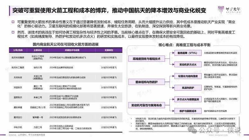 产业链上,卫星应用服务最赚钱(占商业航天收入大头),尤其是卫星导航。关键技术突破是商业化根基:可复用火箭(如蓝箭航天的朱雀三号)大幅降成本,激光通信(如蓝星光域的100Gbps终端)解决太空数据传输瓶颈,AI大模型(如遥感领域的RingMo)让卫星数据价值暴增。
