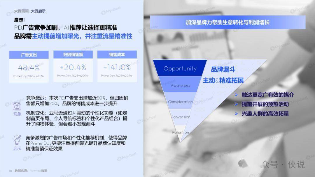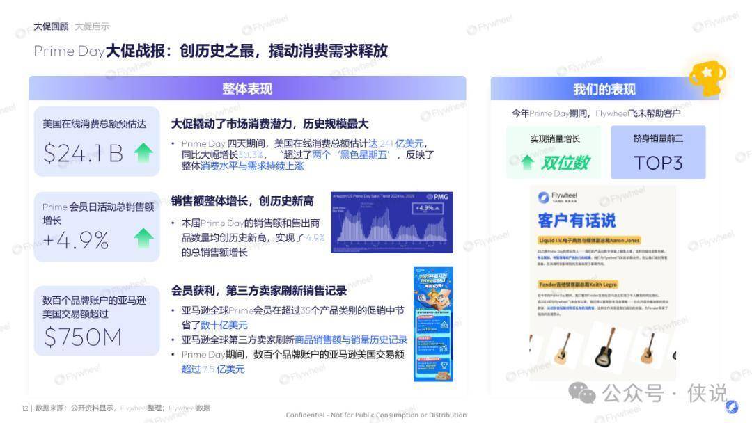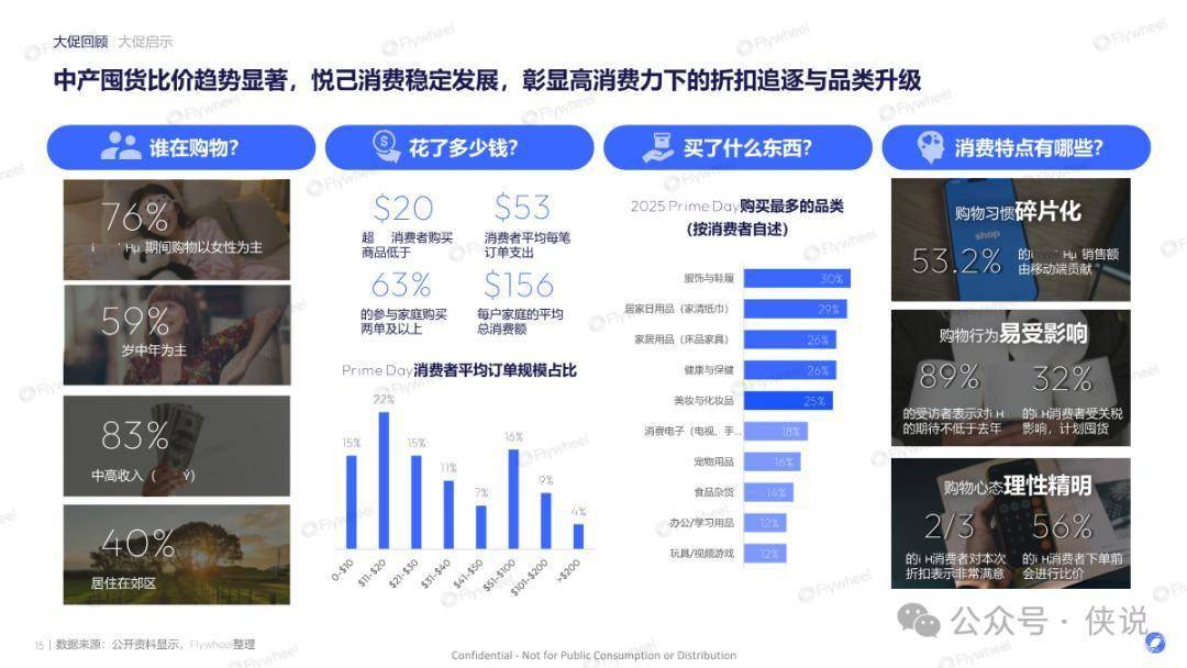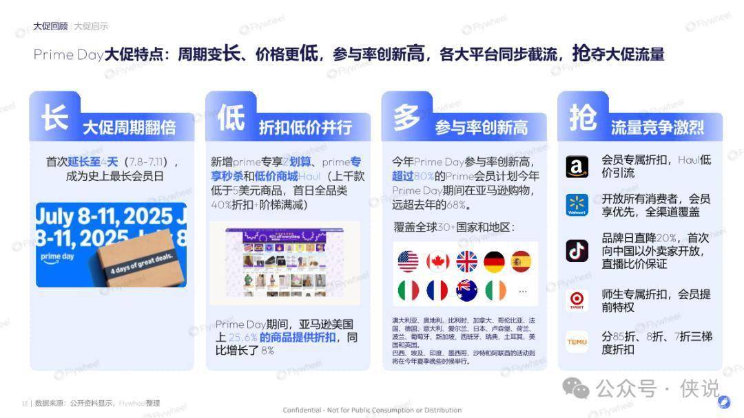 2025年 Prime Day创历史,4天美国在线消费241亿美元(+30.3%),周期延长至4天、参与率超80%,中高收入女性为主要客群,返校用品、家居、电子品类高增长,启示品牌需关注广告精准投放、后期转化、新兴市场及独立站互补。