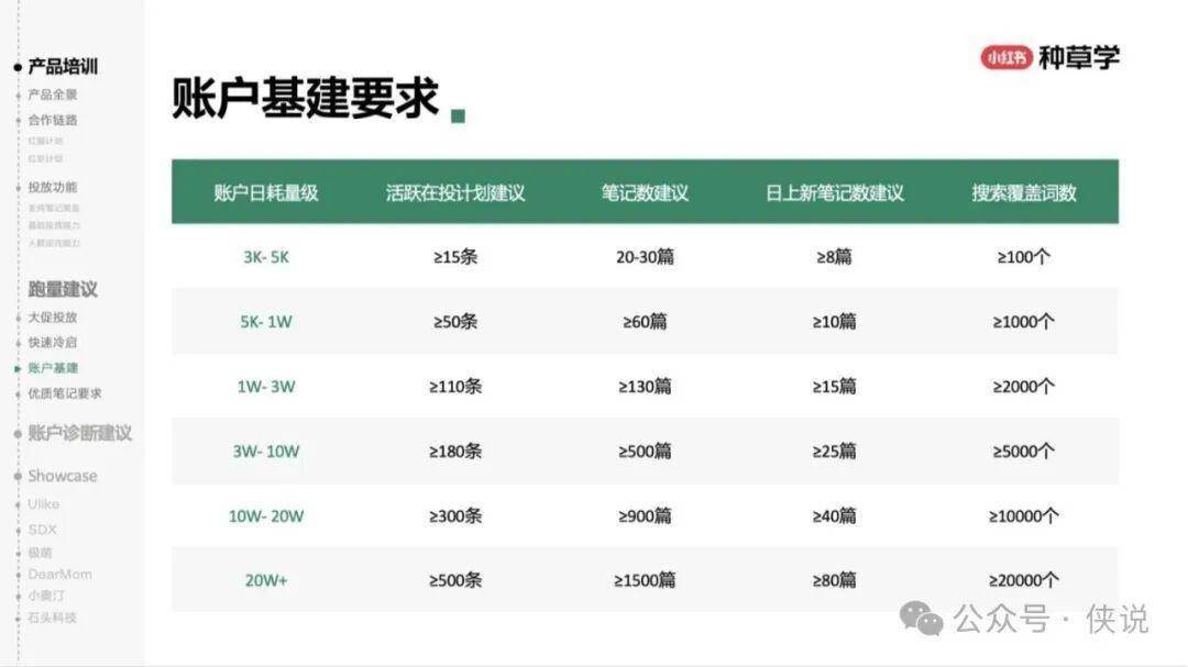 账户要按日耗量级配计划、笔记数量(比如日耗3W-10W需≥180条计划、500篇笔记),优质笔记得抓15-20字吸睛标题、300字以上带卖点的正文,视频笔记40-80秒且5秒完播率≥50%更吃香。