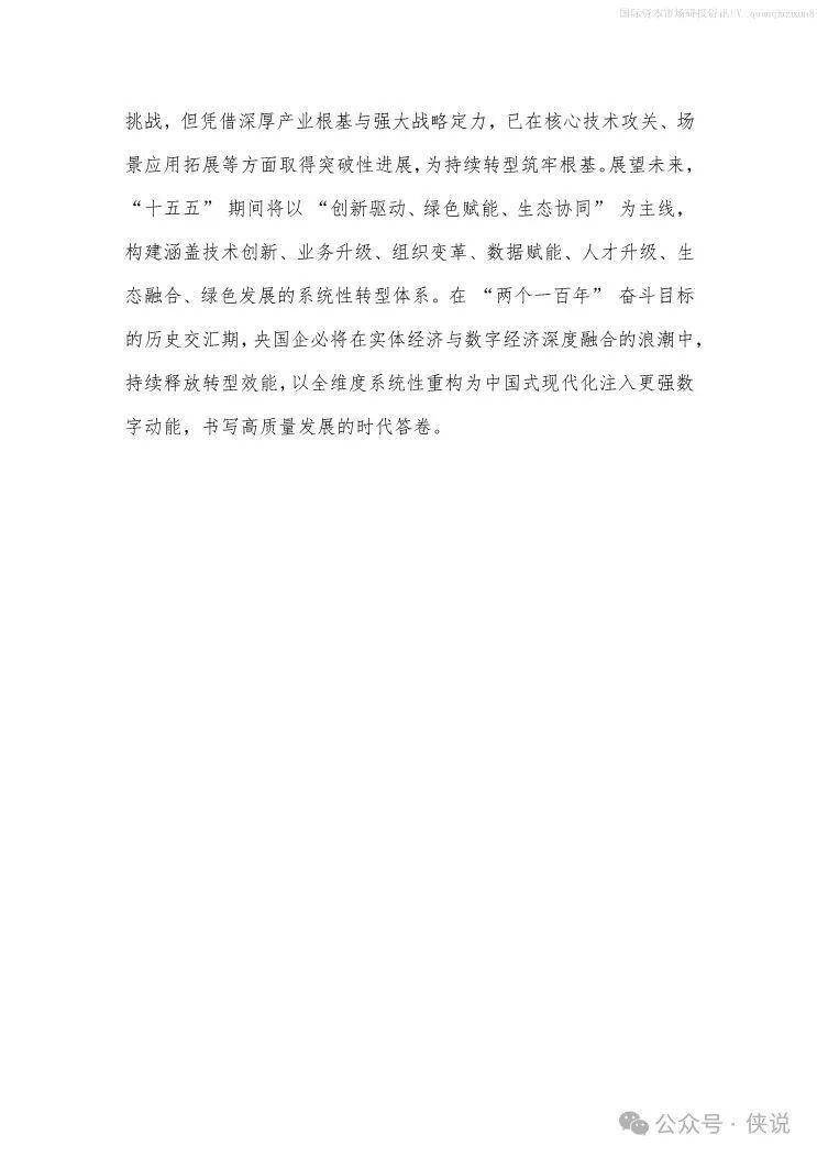 展望未来,“十五五”期间央国企将围绕“创新驱动、绿色赋能、生态协同”,从技术、业务、组织等七大维度构建系统性转型体系,为中国式现代化注入数字动能。