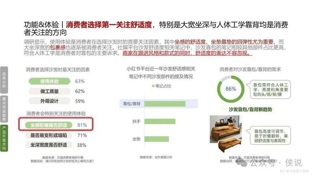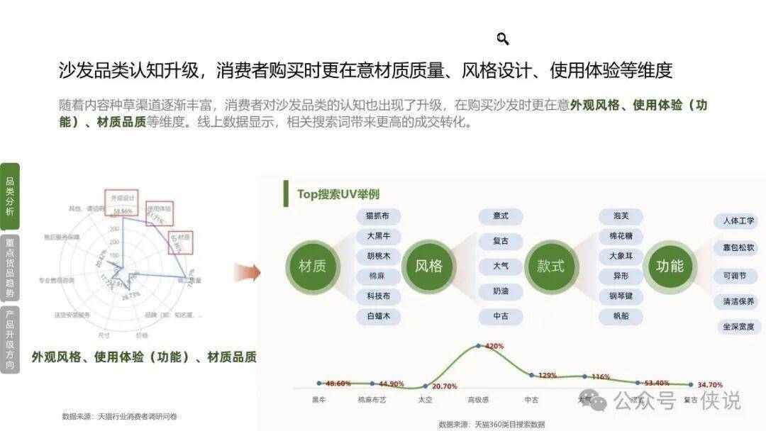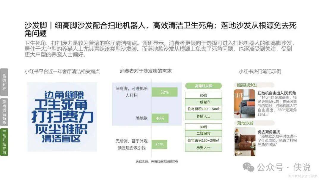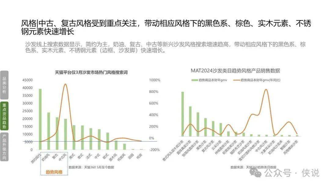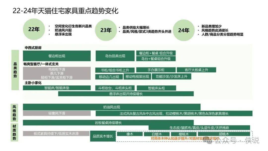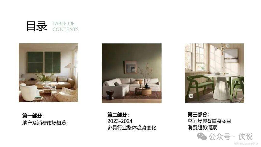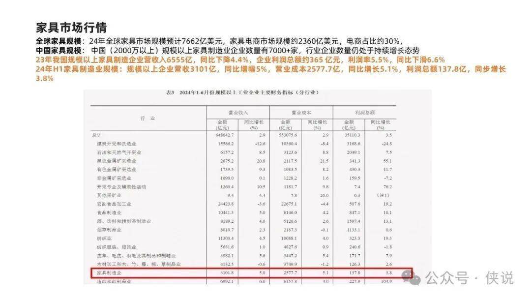 家具行业自身,2024年上半年规模以上企业营收3101亿元(同比+5%),利润137.8亿元(同比+3.8%),全球家具电商占比已达30%。消费趋势上,大家对空间需求更细了——儿童房、老人房优先安排,独立健身空间、衣帽间成热门新增项;材质偏爱自然环保的,木材、真皮、纯棉麻这类材料搜索量涨得快;风格方面,中古、复古、奶油风很火,“小户型显大”“实用省空间”这类话题浏览量都破亿了。