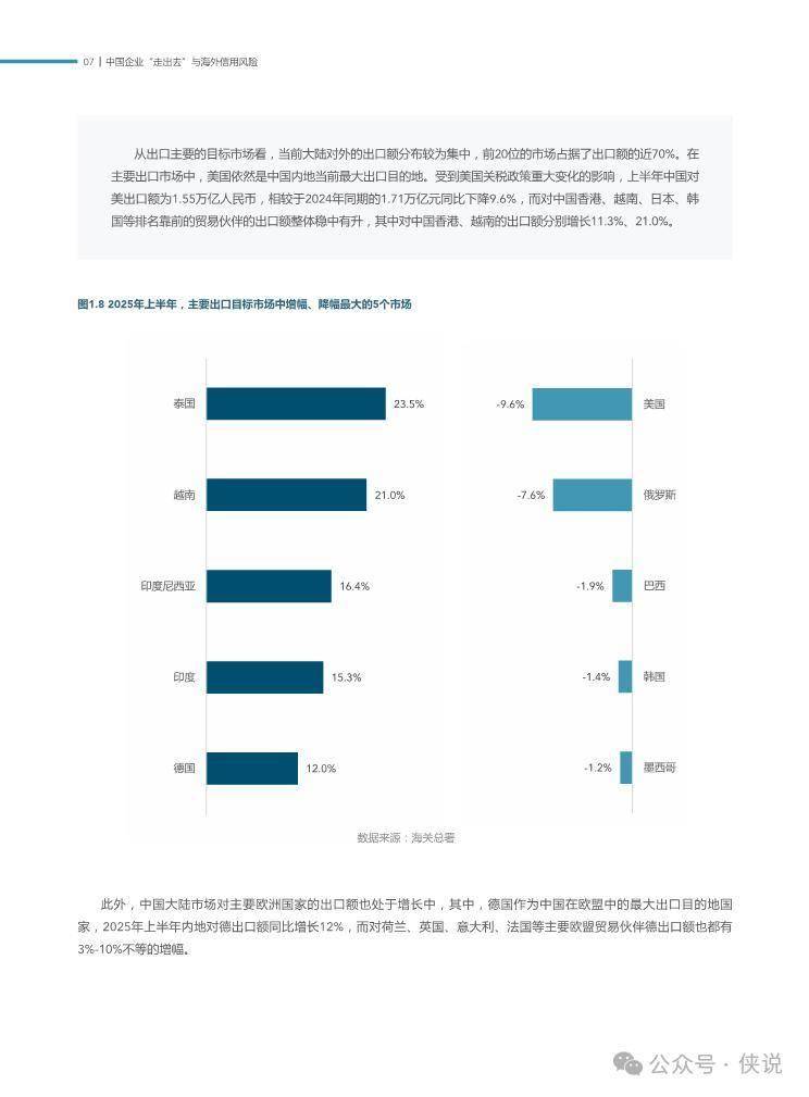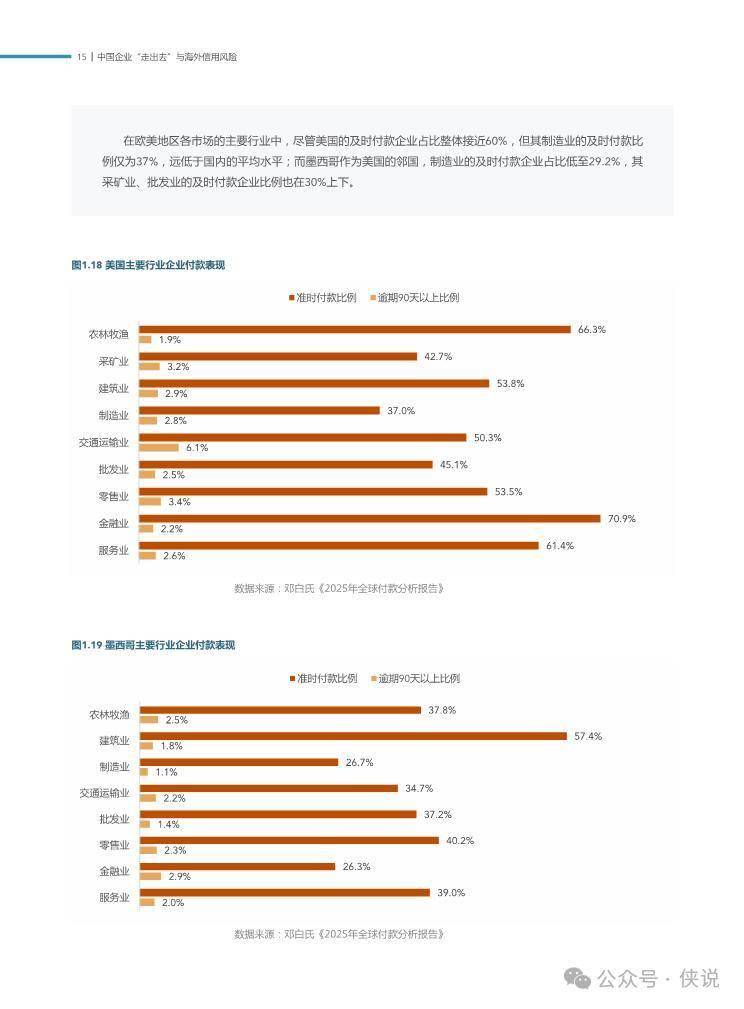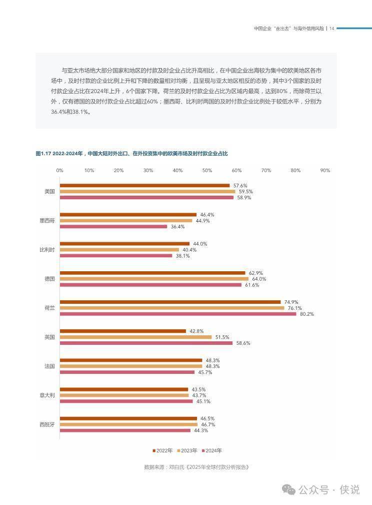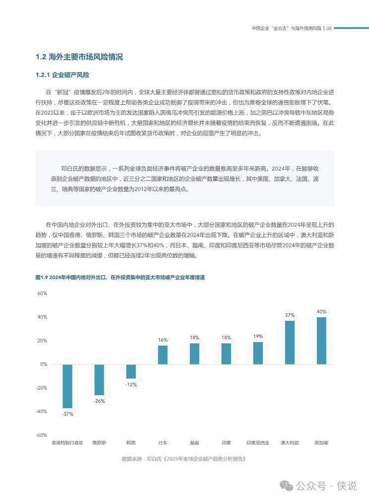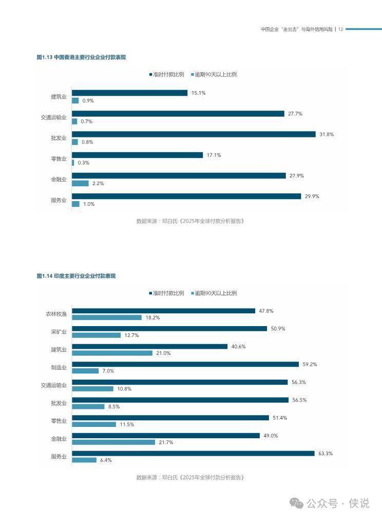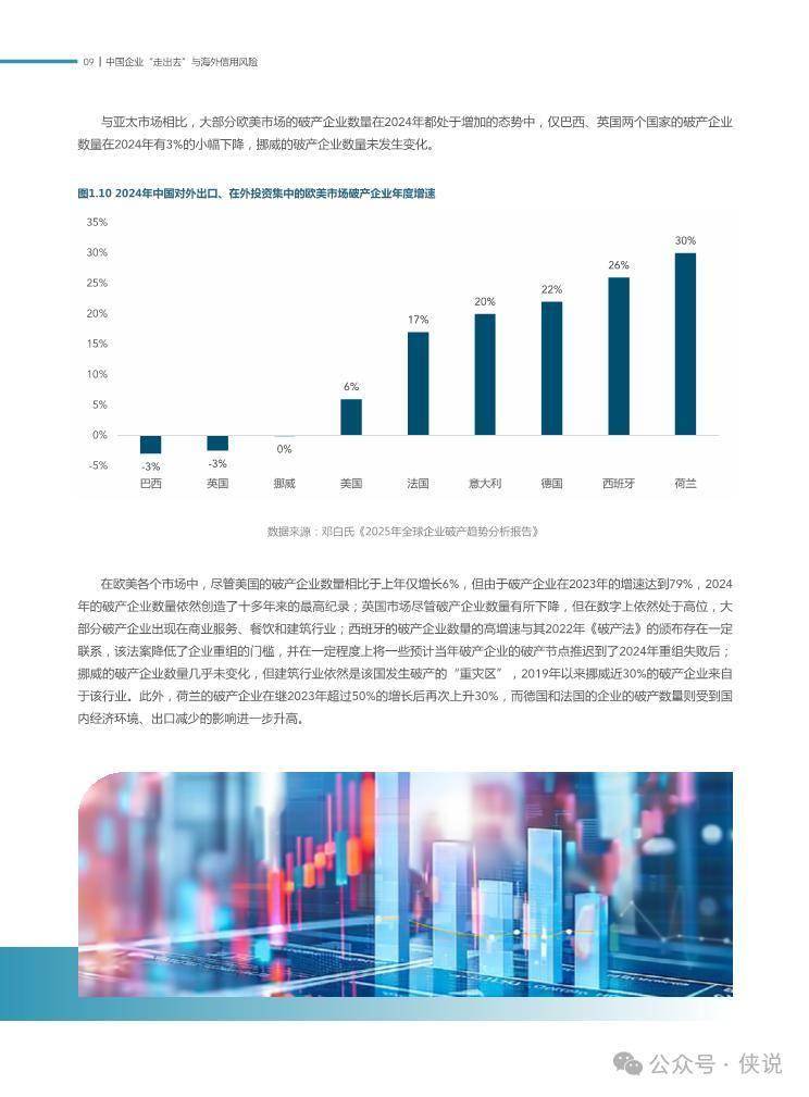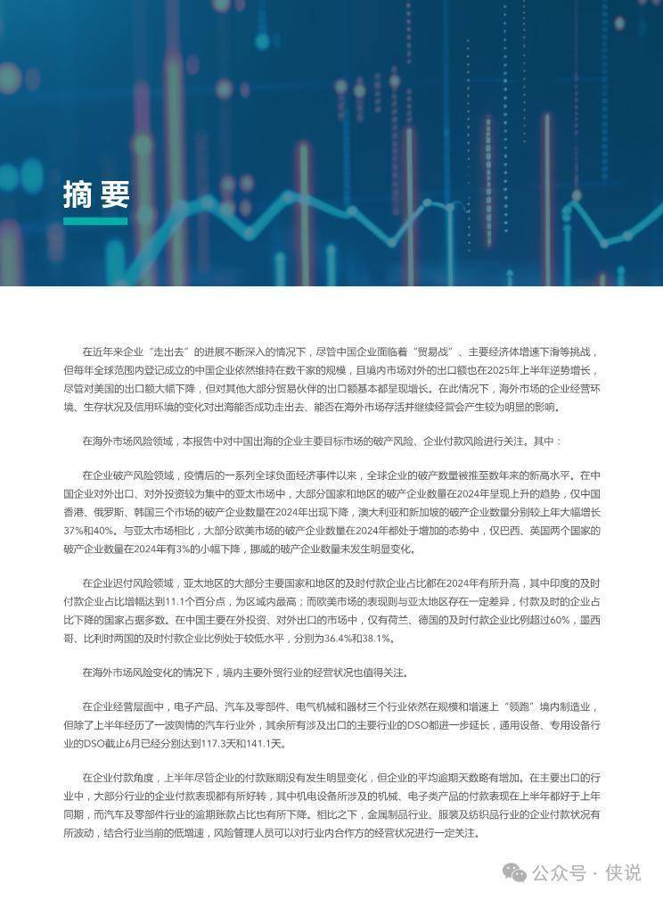风险维度,海外市场中,亚太多数地区2024年企业破产数上升(澳大利亚、新加坡分别增37%、40%),欧美市场亦多增长;迟付风险上,亚太多数地区及时付款企业占比提升(印度增幅11.1个百分点),欧美则多下降(仅荷兰、德国占比超60%)。