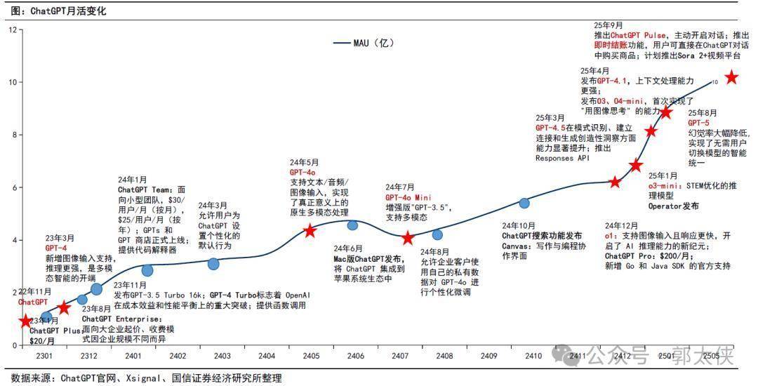 2025年7月,ChatGPT每周活跃用户(WAU)超7亿,差不多全球每10个成年人就有1个用它;每月活跃用户(MAU)快到10亿,比很多国家的总人口还多。