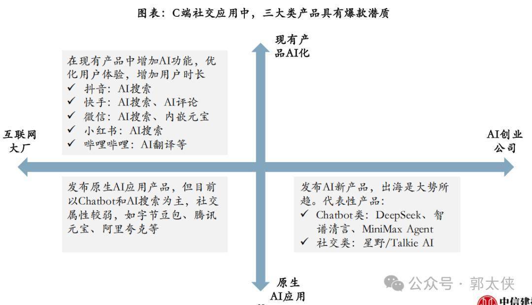 微信有14亿月活,小程序里啥都有(打车、买菜、办公),要是加上AI入口,你在微信里说“帮我用美图做张修图”“帮我用焦点科技找个外贸客户”,直接就能实现——比ChatGPT还方便,因为它本来就懂你的社交关系和使用习惯。