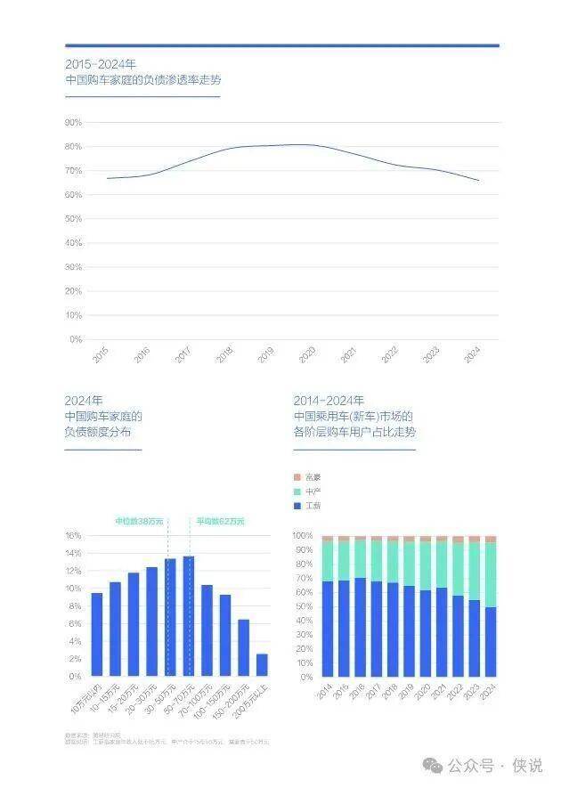 2024年中国购车家庭负债渗透率降至65.97%,较2019-2020年超80%的高位明显回落,但债务压力仍不容忽视。
