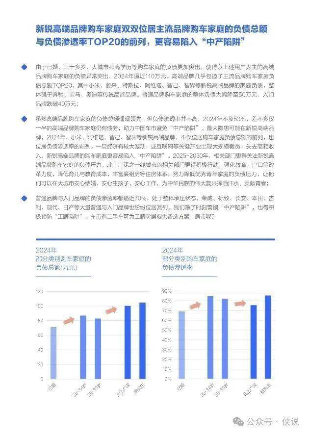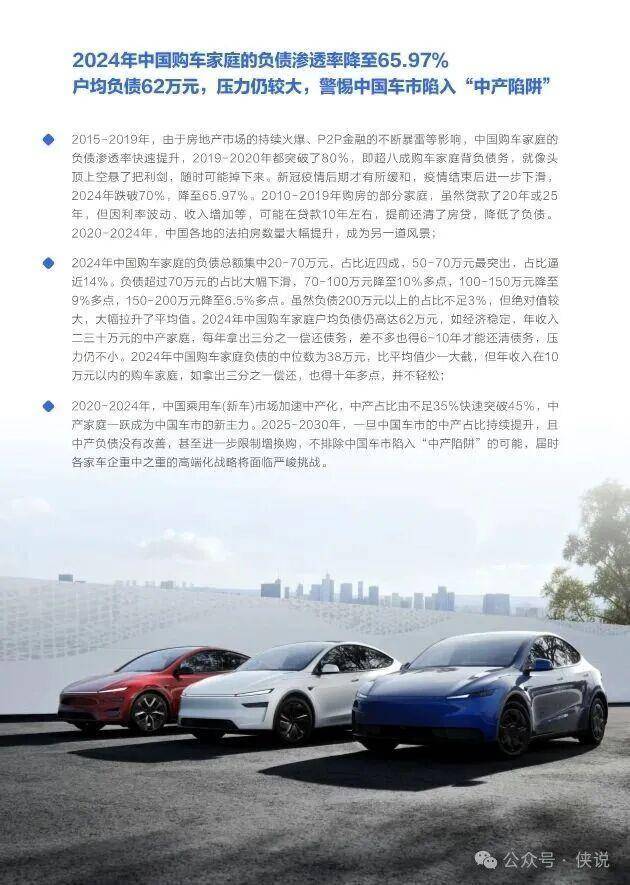 同期,中国乘用车(新车)市场中产占比突破45%,成为车市新主力,若中产负债问题未改善甚至制约增换购,2025-2030年车市或陷入“中产陷阱”,车企高端化战略将面临挑战。