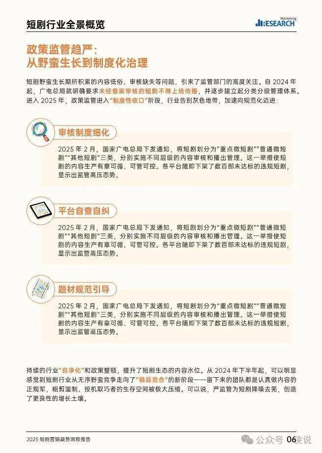 行业正从“全民娱乐”的爆发期向“内容沉淀”的过渡期转型:市场规模持续扩大,平台竞争日趋激烈,用户品味不断升级,监管政策逐步收紧,短剧不再是流量洼地中野蛮生长的产物,而是成为连接用户情绪、品牌价值与内容美学的重要场域。