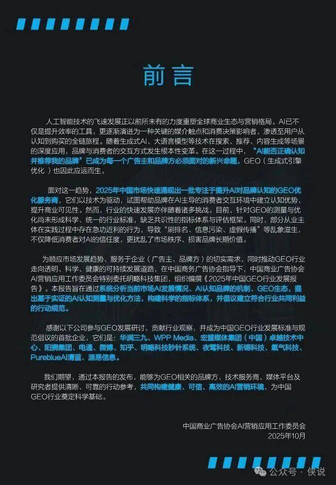 为推动行业健康发展,在中国商务广告协会指导下, 明略科技受委托编撰《2025 年中国 GEO 行业发展报告》。