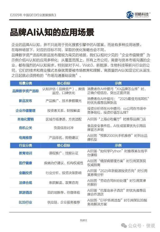 报告系统分析 AI 发展现状、AI 认知品牌机制、GEO 生态,提出科学的 AI 认知测量与优化方法,构建指标体系,并倡议行业行动规范。