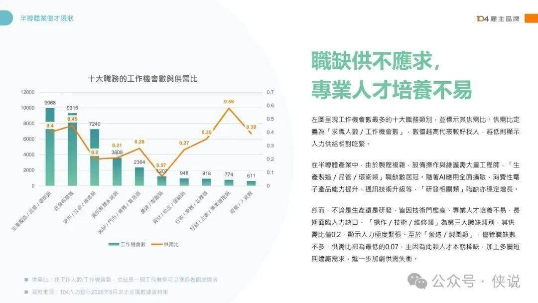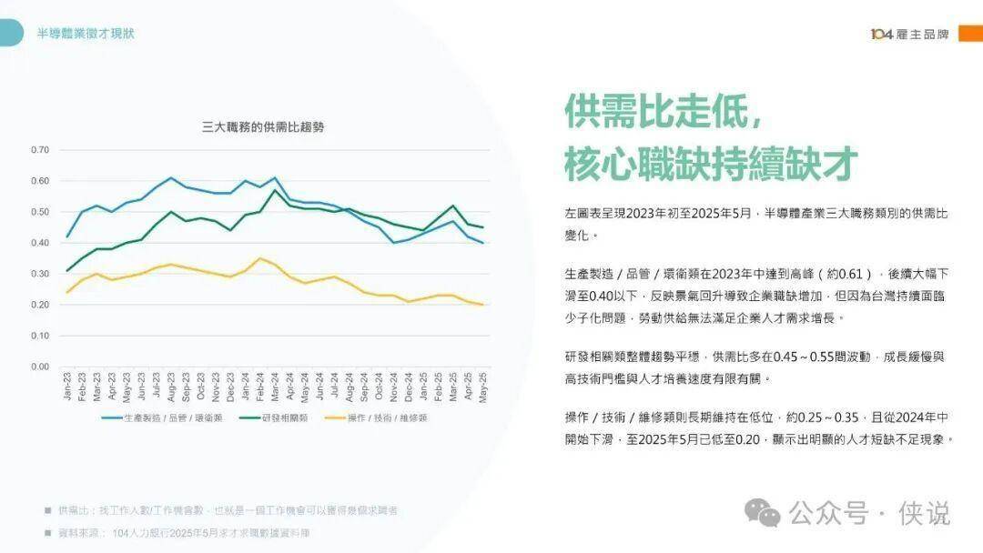 2025年半导体产业迎来多重变革,全球布局多元化、垂直分工融合、AI应用驱动成为核心趋势。产业对人才的需求呈现“双引擎”格局,生产制造/品管/环卫类与研发相关类职缺居高不下,操作/技术/维修类人才更是极度紧缺,供需比低至0.2。