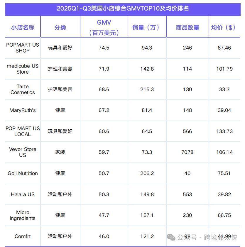 POP MART US LOCAL(134 美元均价)、Vevor(106 美元均价)的高客单模式,与 Tarte Cosmetics(33.3 美元均价)的规模化路线均成效显著。