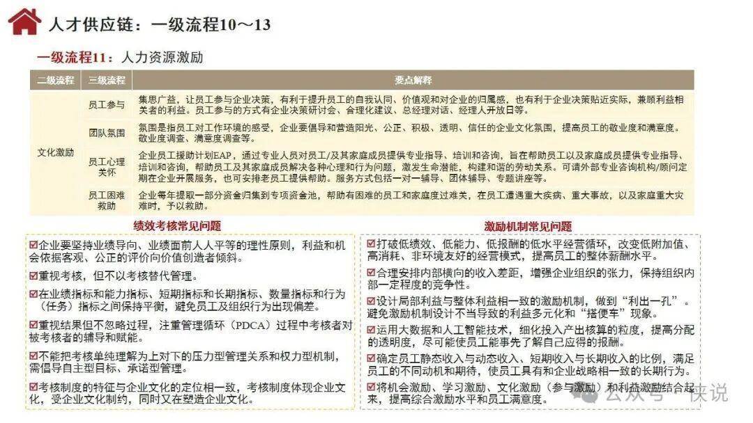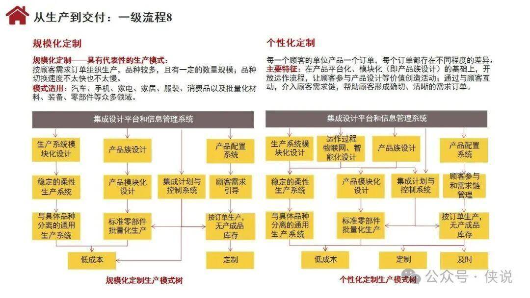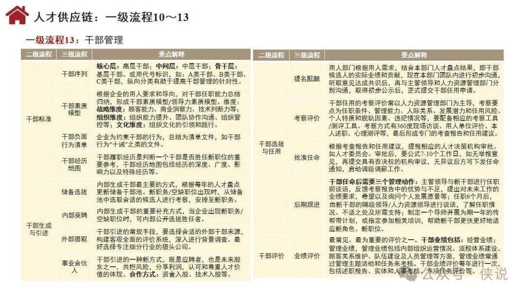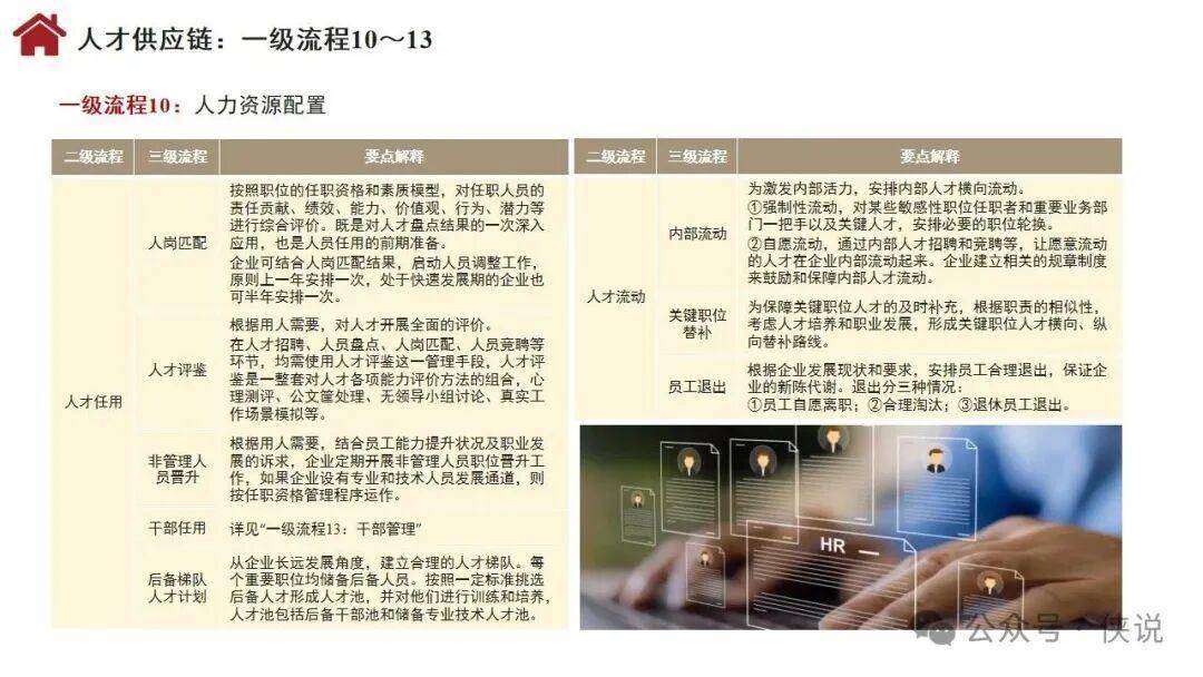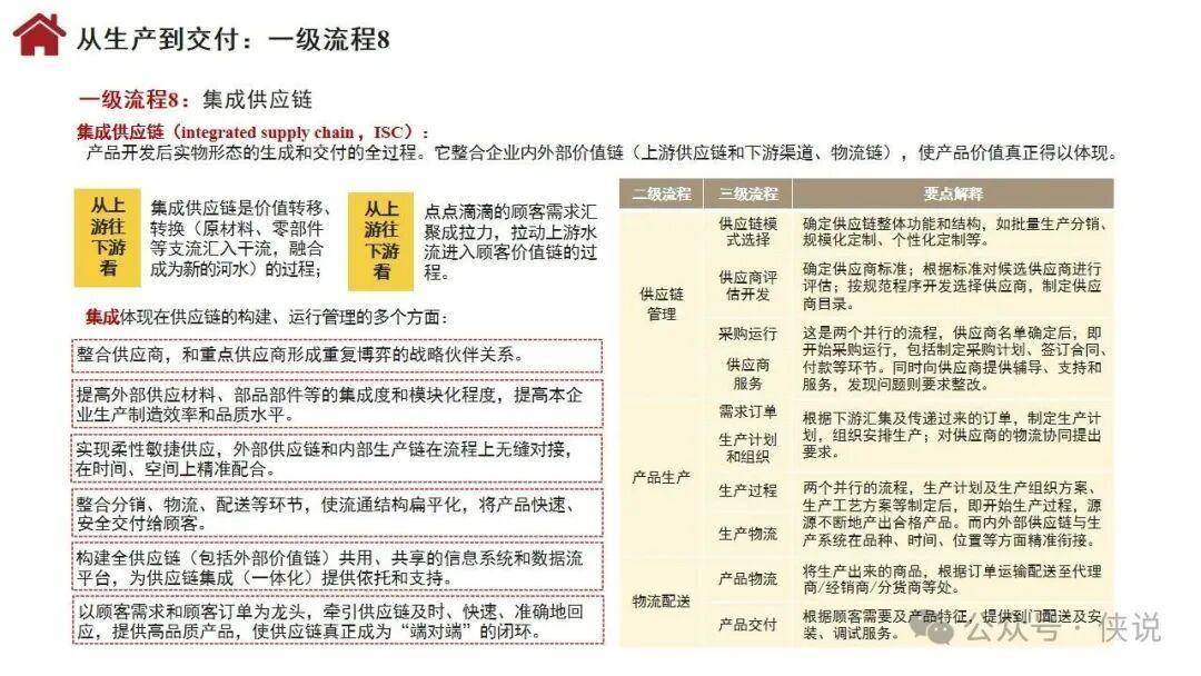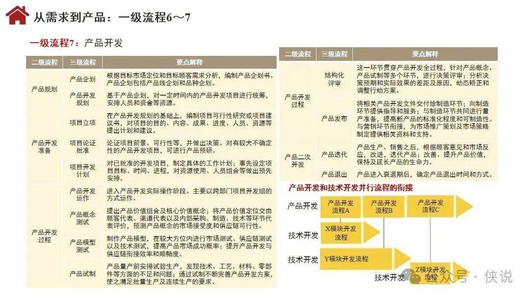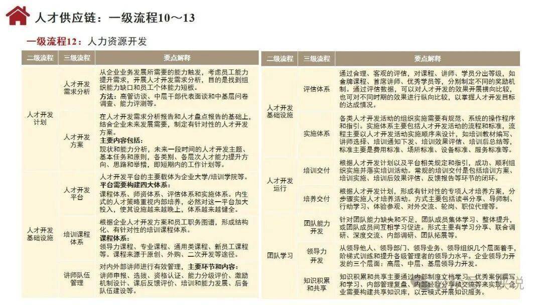 流程体系涵盖26个一级流程,包括战略管理、年度计划与预算、需求分析、产品开发、集成供应链、顾客连接、人才供应链等关键环节,通过多层级分解实现精准落地。组织设计聚焦流程活动的组织化,涵盖职能制、事业部制、矩阵制等基本形态,以及嵌套型、分布型、生态型等新型组织形态,明确部门职责与职位设置标准。