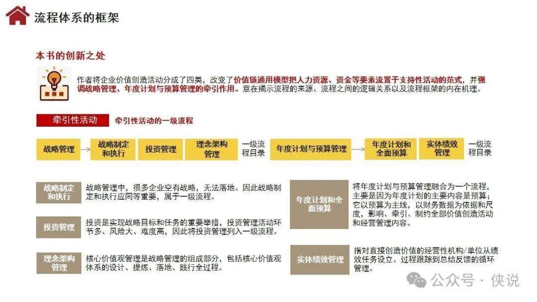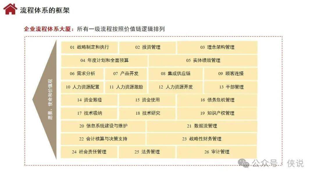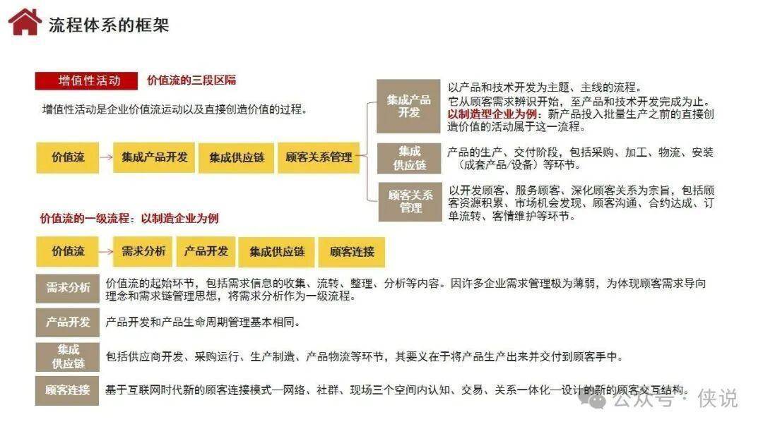 构建企业管理体系的全景指南重磅来袭!核心围绕“价值创造活动、流程体系、组织设计、协同机制”四大维度,形成“活动流程化、流程组织化、组织协同化”的闭环逻辑。