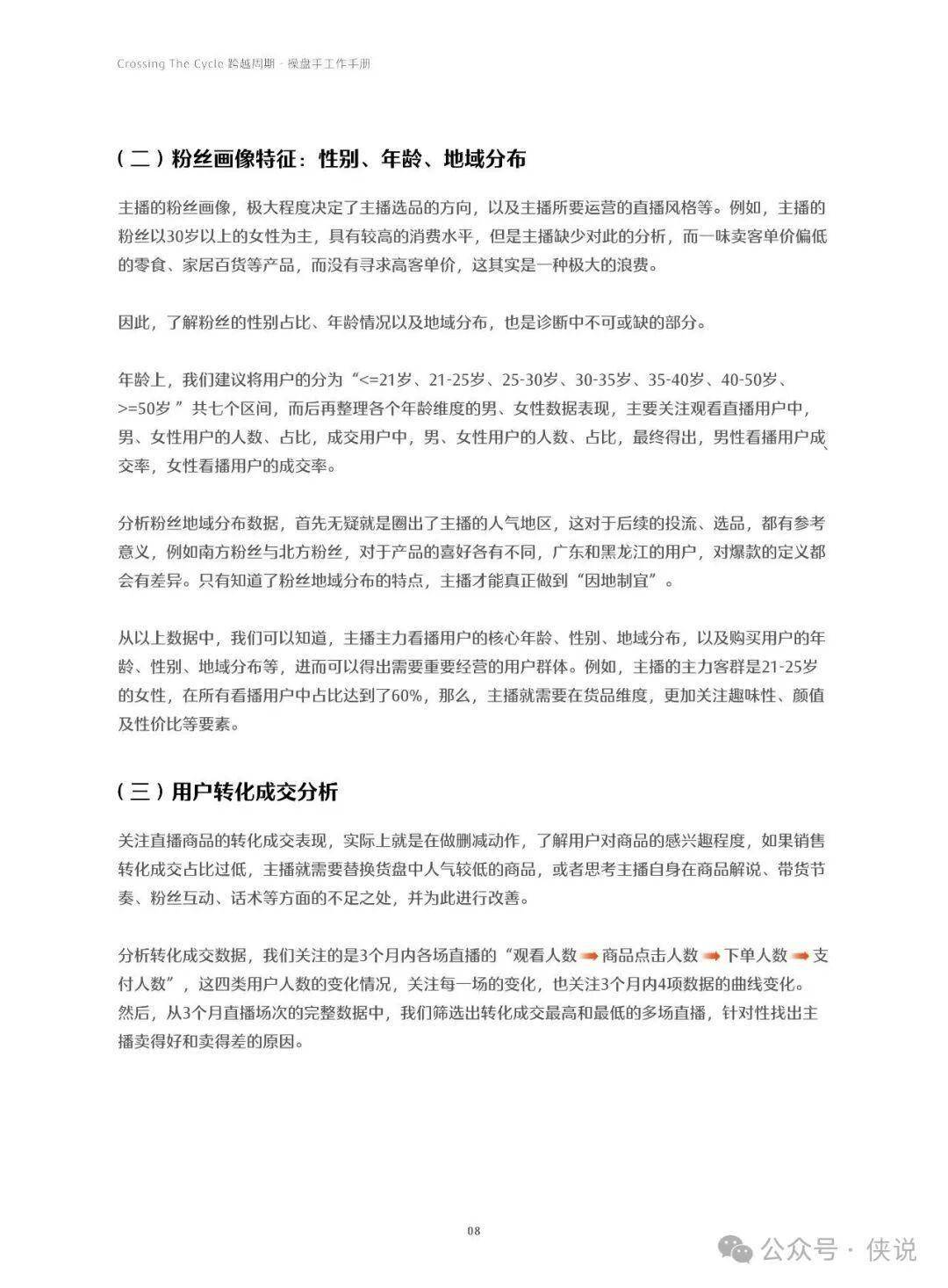 手册包含大量实操案例与工具模板(排品表、投流计划、复盘报告等),解决了主播流量低、转化差、粉丝运营难等核心痛点,帮助操盘手实现单场GMV2-10倍增长。本篇太侠分享的是《快手电商:直播带货操盘手工作手册》。